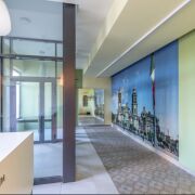 - Дизайнерские лобби с местом для консьержа, зоной отдыха, местом для мытья лап домашних животных