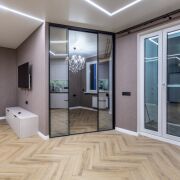 Пол выложен кварц винилом (Английская елка)