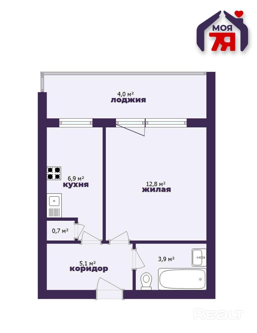 -Квартира расположена на 4 этаже кирпичного 5-этажного дома. Общая площадь составила 30 м2 - компактный, но функциональный формат, который отлично подойдет для молодой семьи.