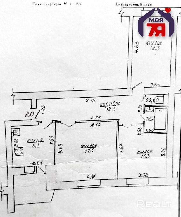 - Жилая площадь представлена тремя изолированными комнатами - 17 кв.м., 11,3 кв.м., 12,3 кв.м.