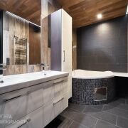 В отделке и наполнении квартиры использовались высококачественные современные материалы, техника, оборудование. Ремонт, мебель, техника вотличном состоянии! Полы – паркетная доска, керамогранит (все полы в зоне плитки с подогревом), стены –декоративная штукатурка, потолки – паркетная доска, в ванной – термостабильный бук. Межкомнатные двери – массив, на входе в спальню из закаленного стекла. Дополнительно осуществлена шумоизоляция всего пола и потолка, а также стены в спальне, граничащей с соседней квартирой. Встроенная кухня оборудована духовым шкафом, посудомоечной машиной, варочной панелью, вытяжкой, холодильником (кухонная техника новая). В жилой комнате и гостиной установлены кондиционеры. Осуществлена замена всех радиаторов отопления (Zehnder). Также заменены все стеклопакеты, включая лоджию (профиль Rehau). На входе видеодомофон.