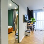 Квартира находится в каркасно-блочном доме 2020г. постройки. В доме установлено видеонаблюдение, 3 малошумных лифта Otis, просторное лобби, выход из подъезда на 2 стороны дома.
