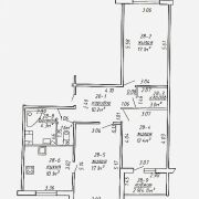7/9 этаж; 2012 года постройки дом; высота потолков 2,54 метра; общая площадь по СНБ - 78,7 м2; жилая -1-17,1 м2; жилая-2-17,1 м2; жилая-3-12,4 м2; кухня-10,1 м2; санузел-1-4,3 м2; туалет-1,6 м2; лоджия-4,1 м2; коридор-10,2 м2; кладовка-3,0 м2.