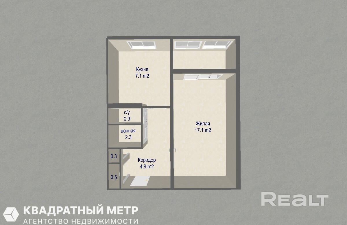 ✅ Отличная планировка: Просторная кухня (7,1 м2), светлая комната (17,1 м2) с выходом на застекленную лоджию, раздельный санузел, шкаф-купе в коридоре. Общая площадь по СНБ — 35,3 м2.