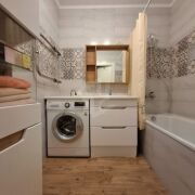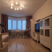 • Современный свежий ремонт: ламинат и плитка на полу, обои на стенах, натяжные потолки по всей квартире, качественные стильные материалы.