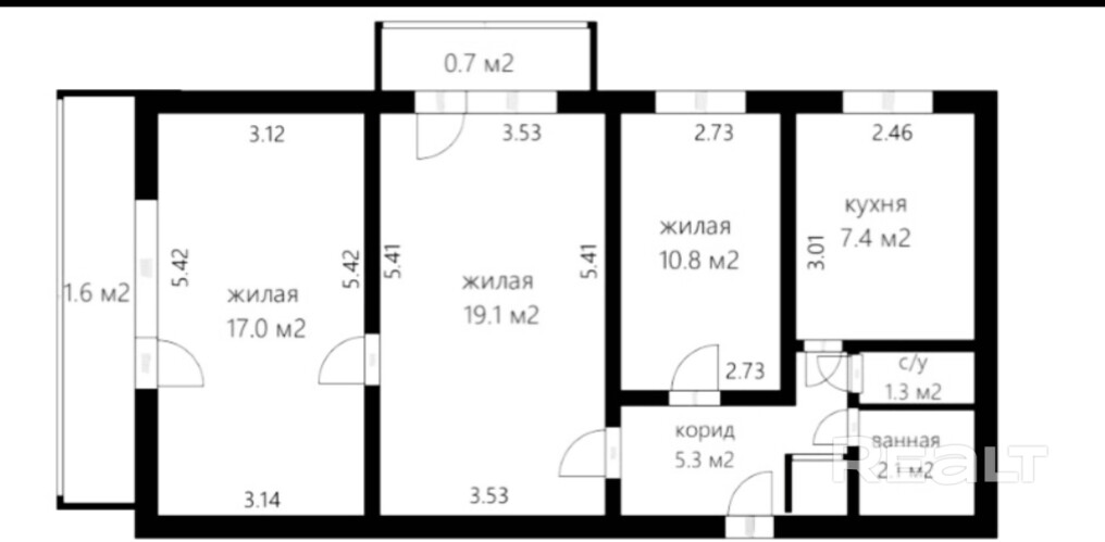 7.4 м²