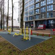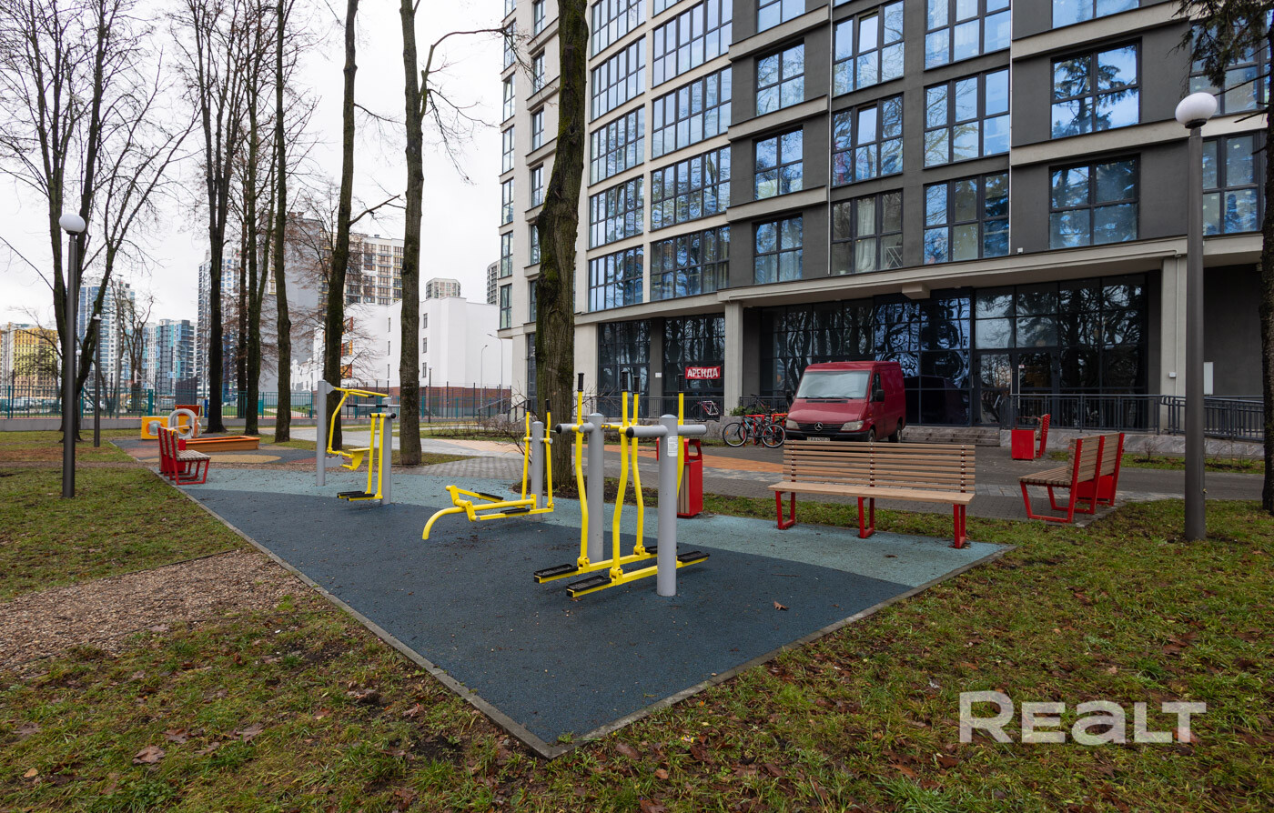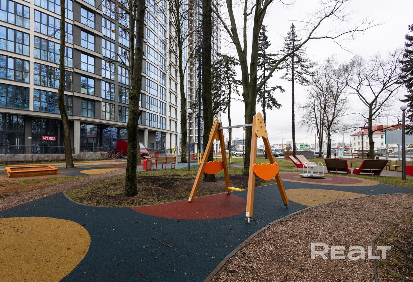 Современный дом с панорамными лифтами, чистые подъезды, благоустроенный двор. Приличные соседи.