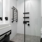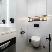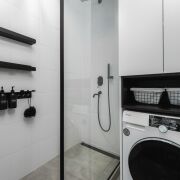 В ванной комнате установлена стирально-сушильная машина Weissgauff, проточный водонагреватель; датчики освещения в ванной и санузле.