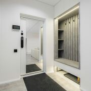 В подъезде и в квартире установлена система безключевого доступа (face ID, отпечаток пальца). Также можно использовать код или чип.