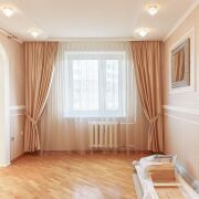 * Квартира с хорошим ремонтом, на полу паркетная доска и плитка, межкомнатные двери из массива, качественные стеклопакеты, просторная прихожая оборудована шкафом-купе, мебель и техника остается по согласованию.