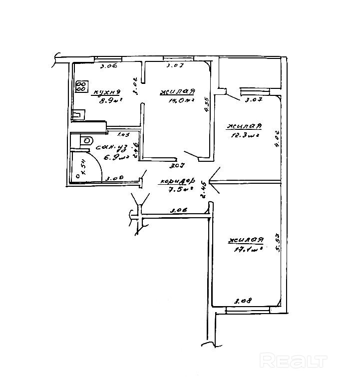 Общая площадь по СНБ 68,8 м2