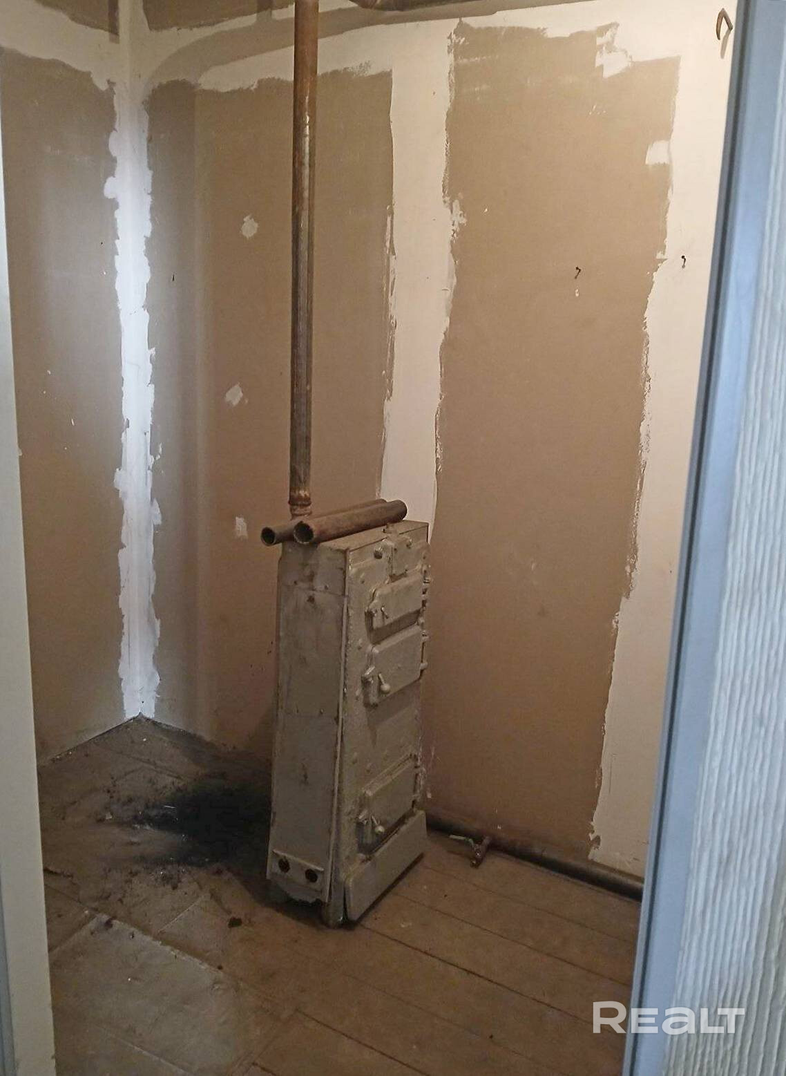 Котельная, гардероб: пол - доска (черновая). Стены - гипсокартон. Потолок - пластик. Межкомнатные двери - МДФ. Электричество есть. Газ (центральный) – подведён к дому. Отопление - котёл на твёрдом топливе. Батареи чугунные, разведены по дому. Вода (центральная, холодная) – 10 метров от дома. Туалет на улице. Сарай.