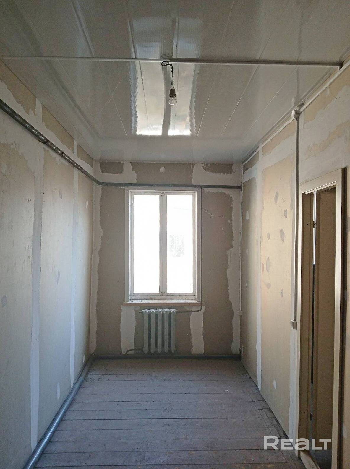 Кухня, комнаты: пол - доска (черновая). Стены - гипсокартон. Потолок - пластик. Окна - ПВХ.