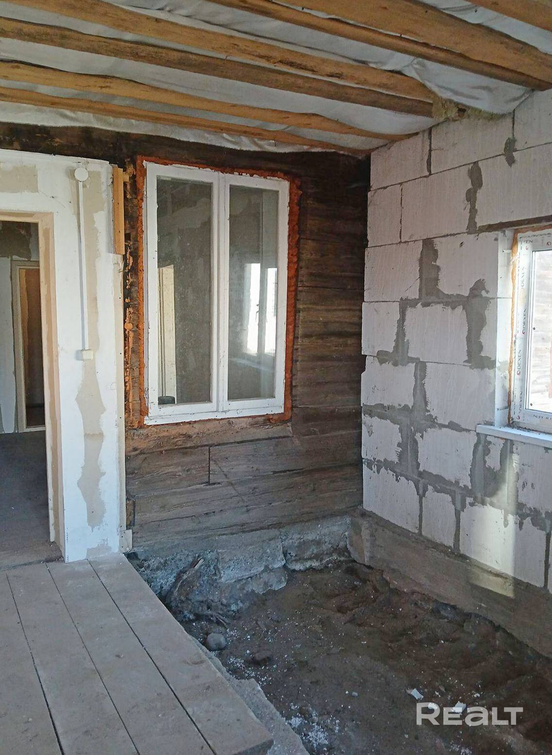 Веранда: стены - газосиликатный блок. Пол - отсутствует. Потолок – деревянный (черновая доска). Окно - ПВХ.