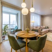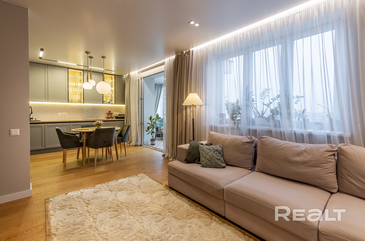 Квартира находится в престижном жилом комплексе Променад. Выполнен стильный дизайнерский ремонт с использованием высококачественных материалов. Теплый пол, кондиционер, паркет.