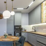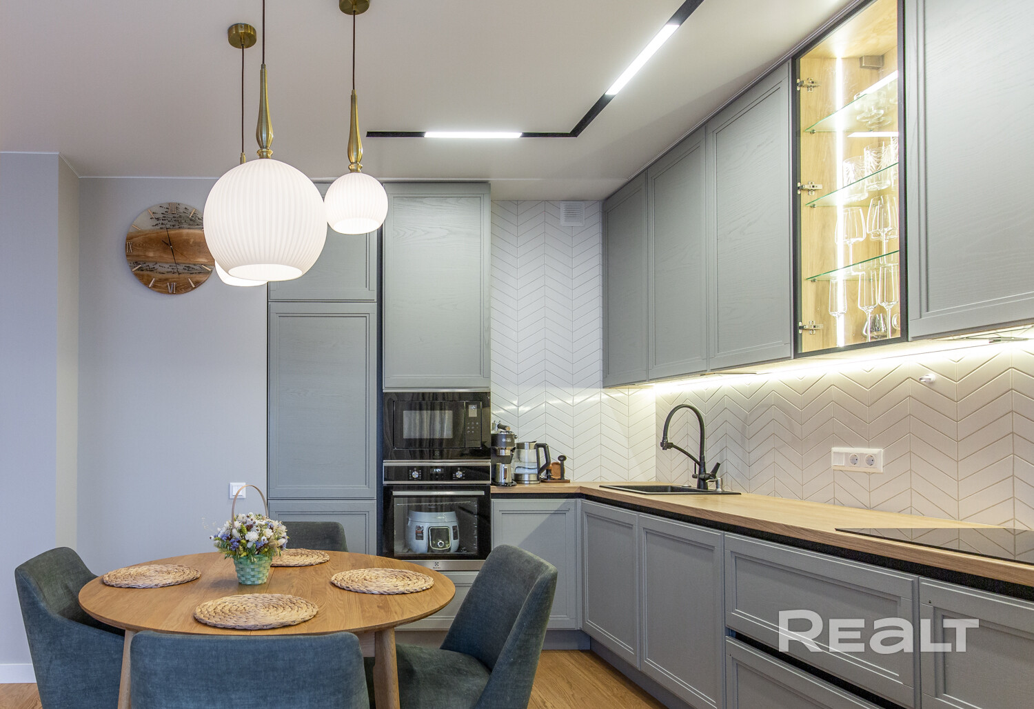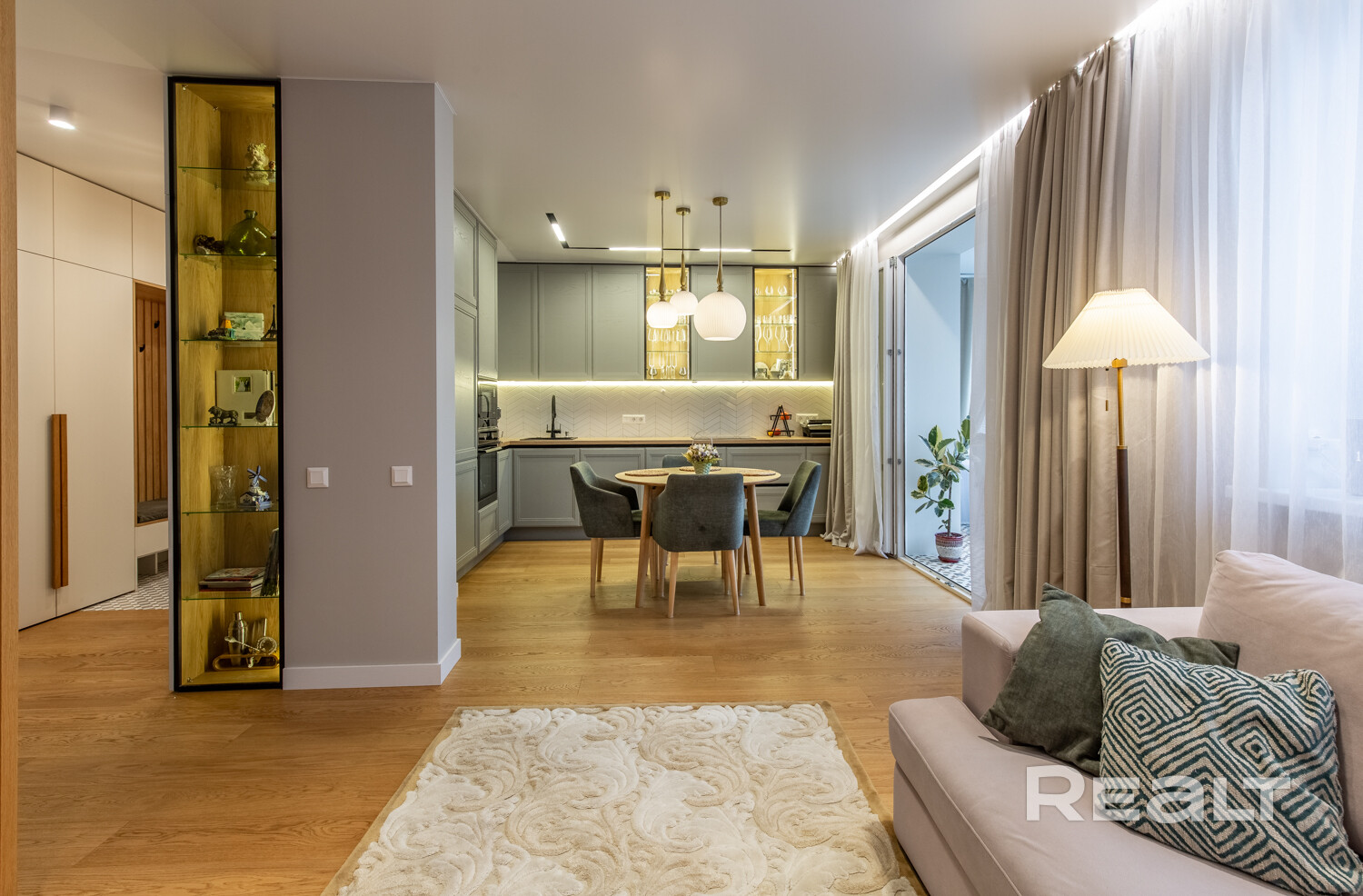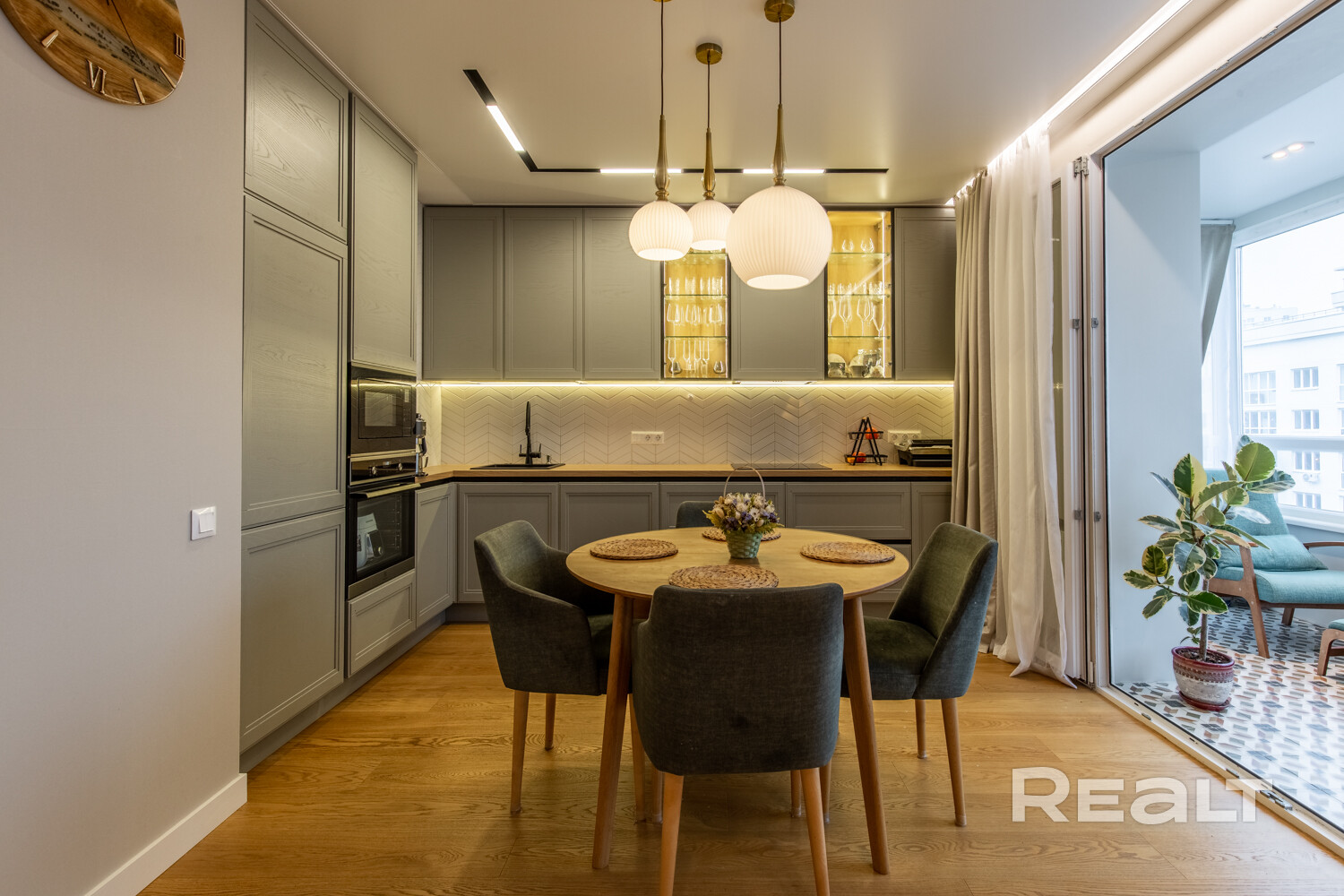 Выполнен стильный дизайнерский ремонт с использованием высококачественных материалов.