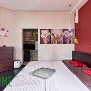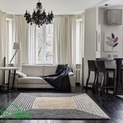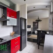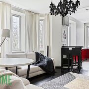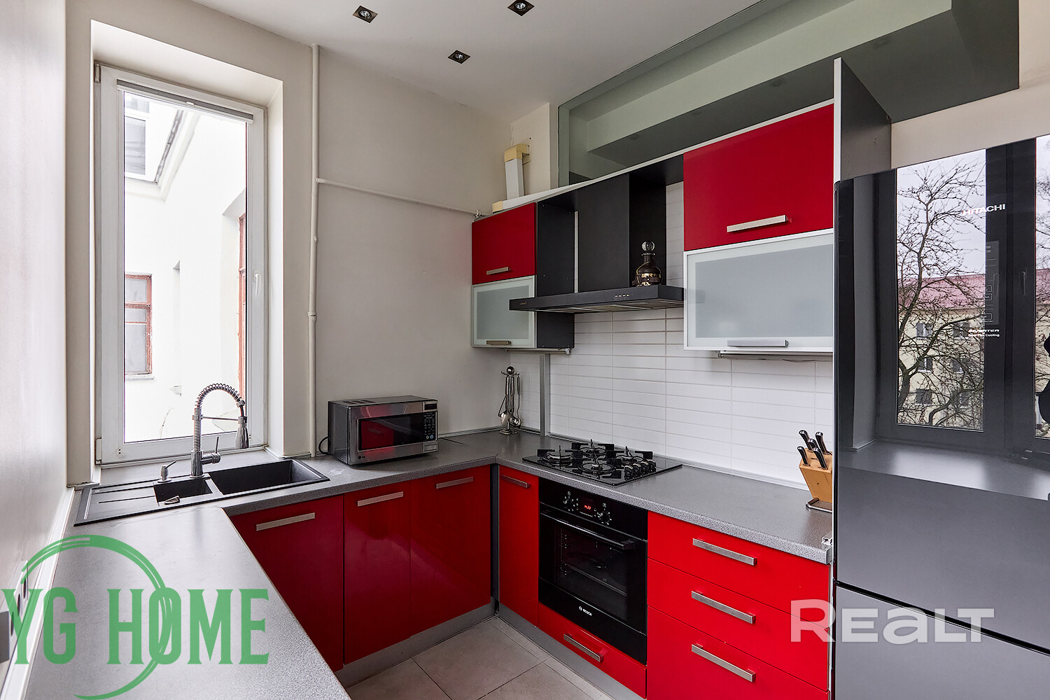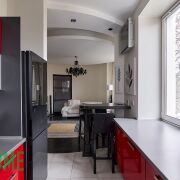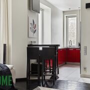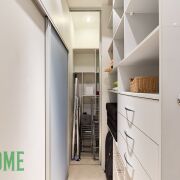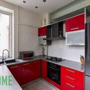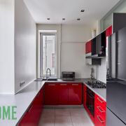 - Встроенная кухня оборудована газовой варочной панелью Electrolux, духовым шкафом и посудомоечной машиной Bosch, сушильной и стиральной машиной LG, холодильником и вытяжкой.