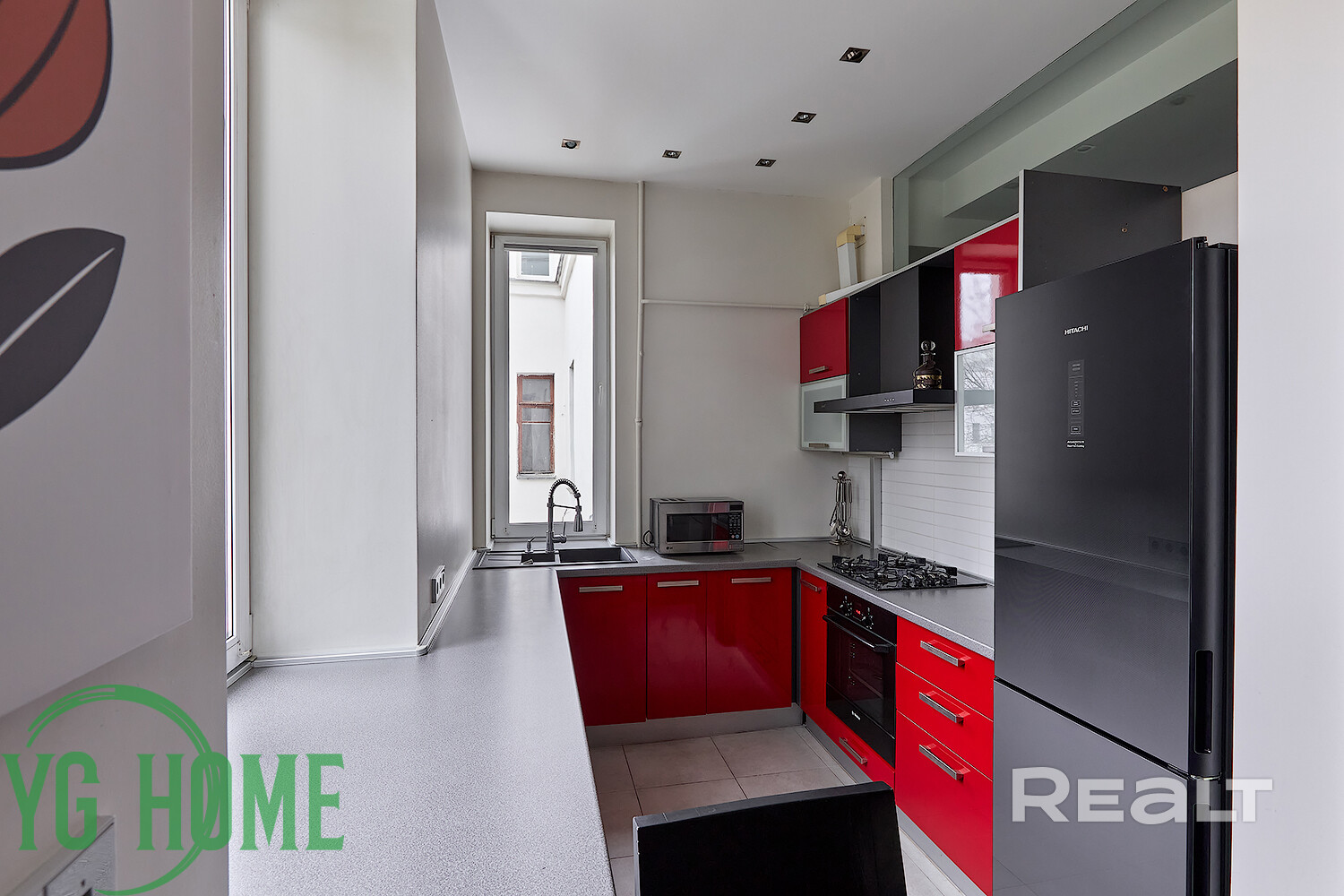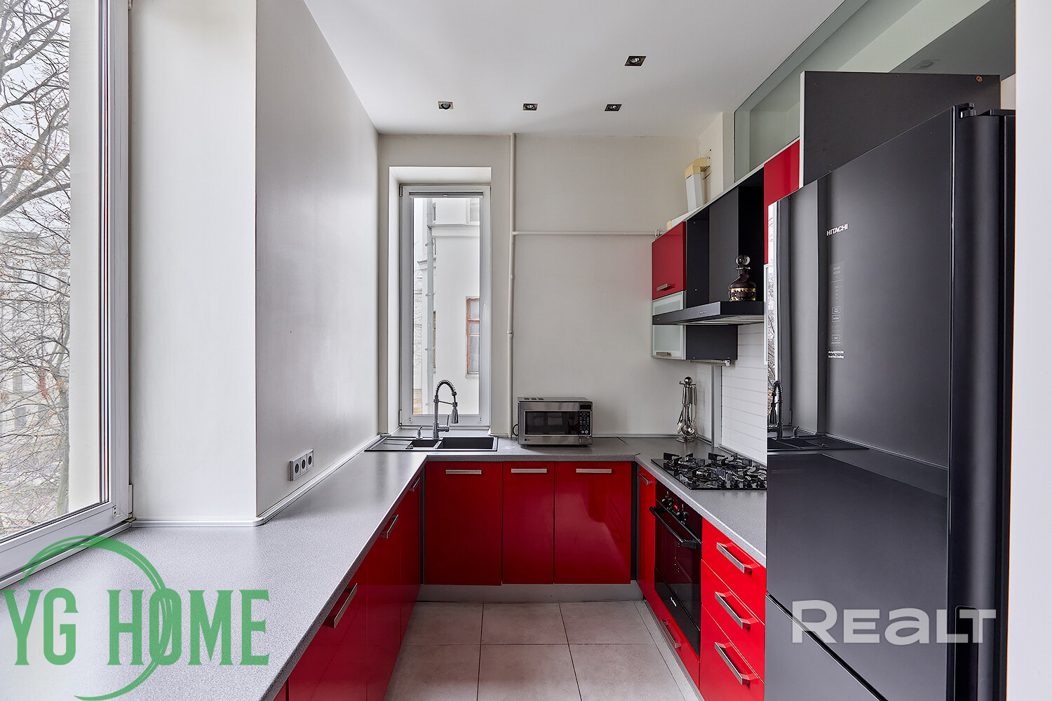 Окна – ПВХ, высокие, выходят в тихий и зелёный двор.