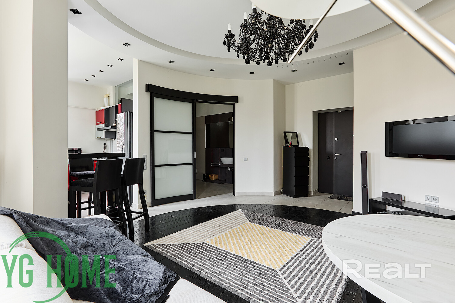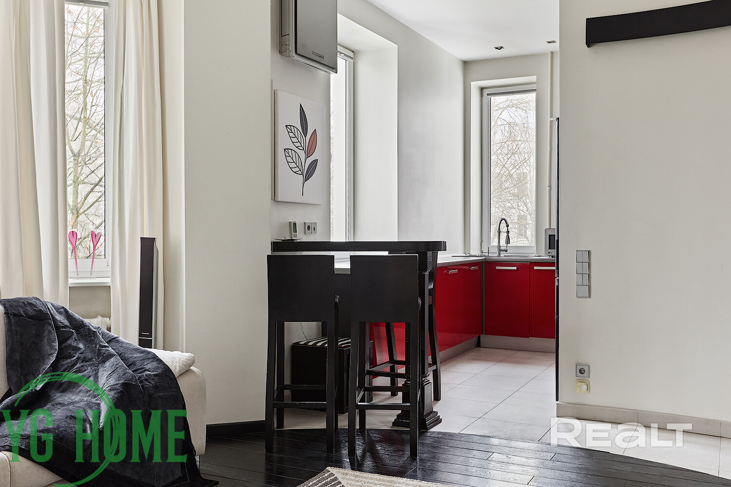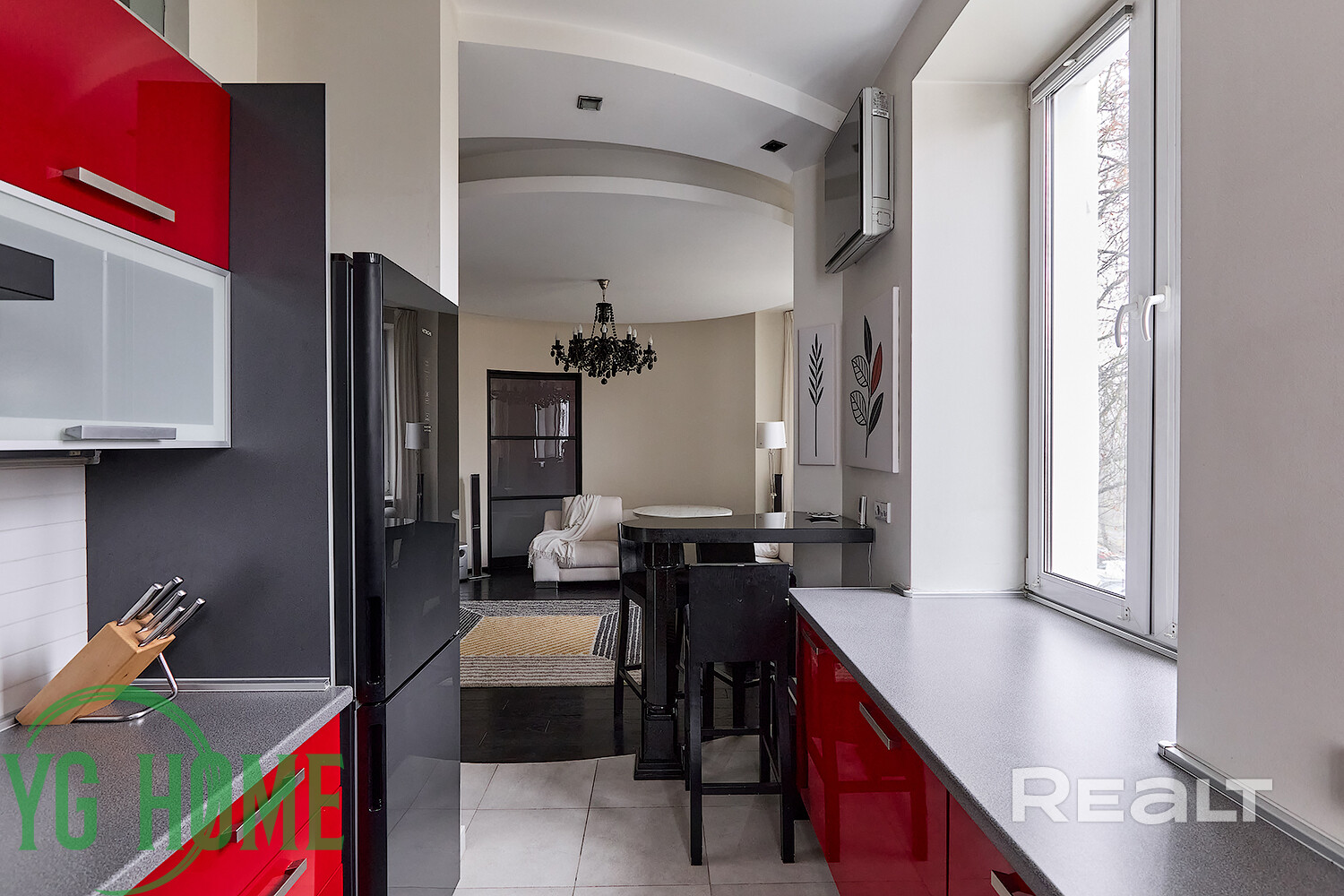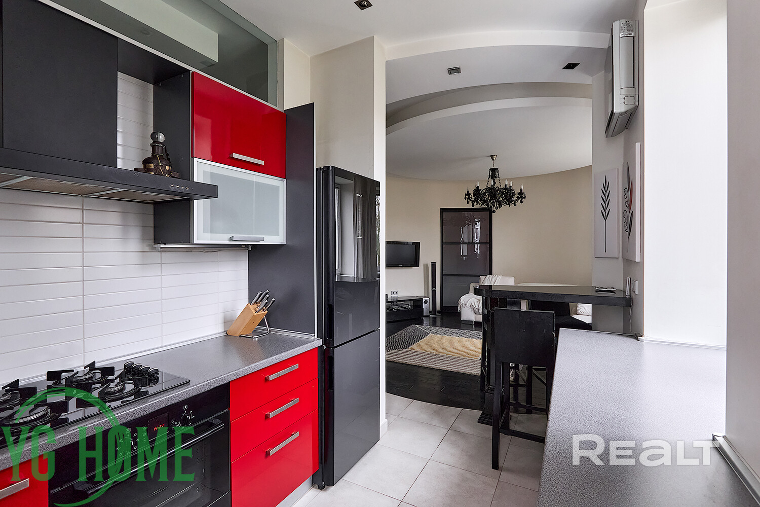 - В зоне кухни-гостиной установлен кондиционер LG.