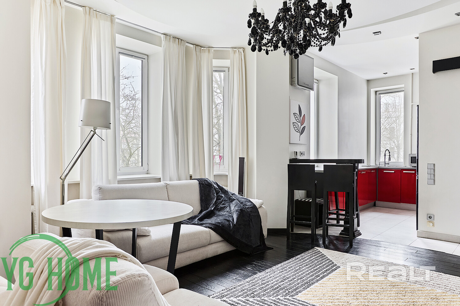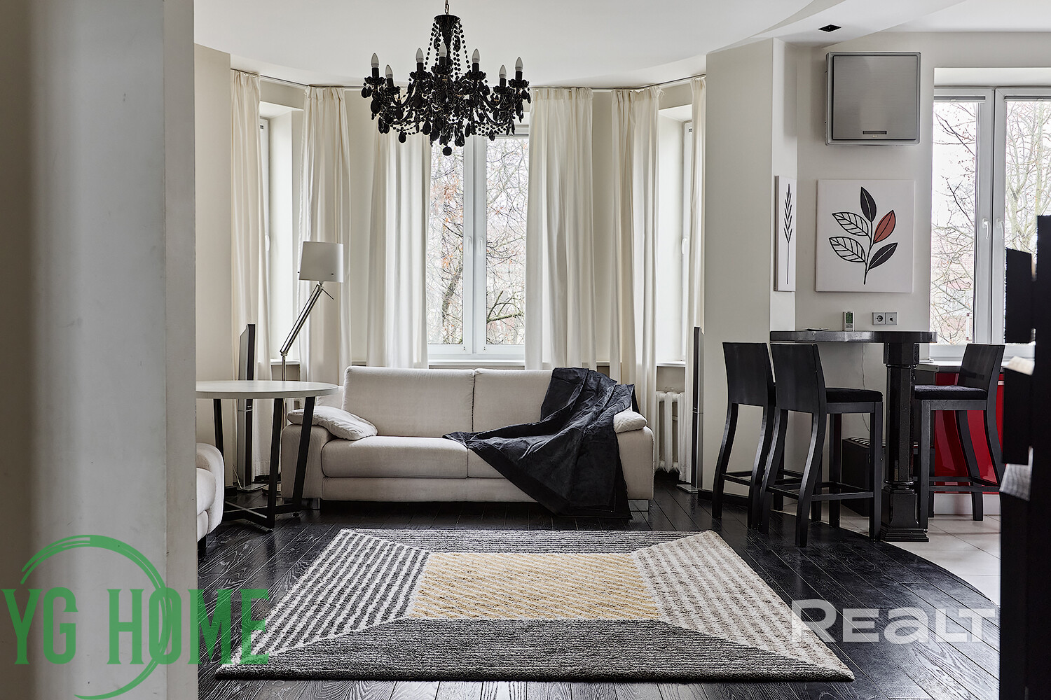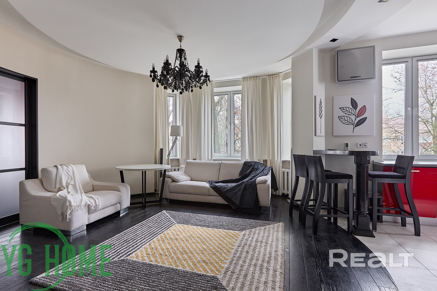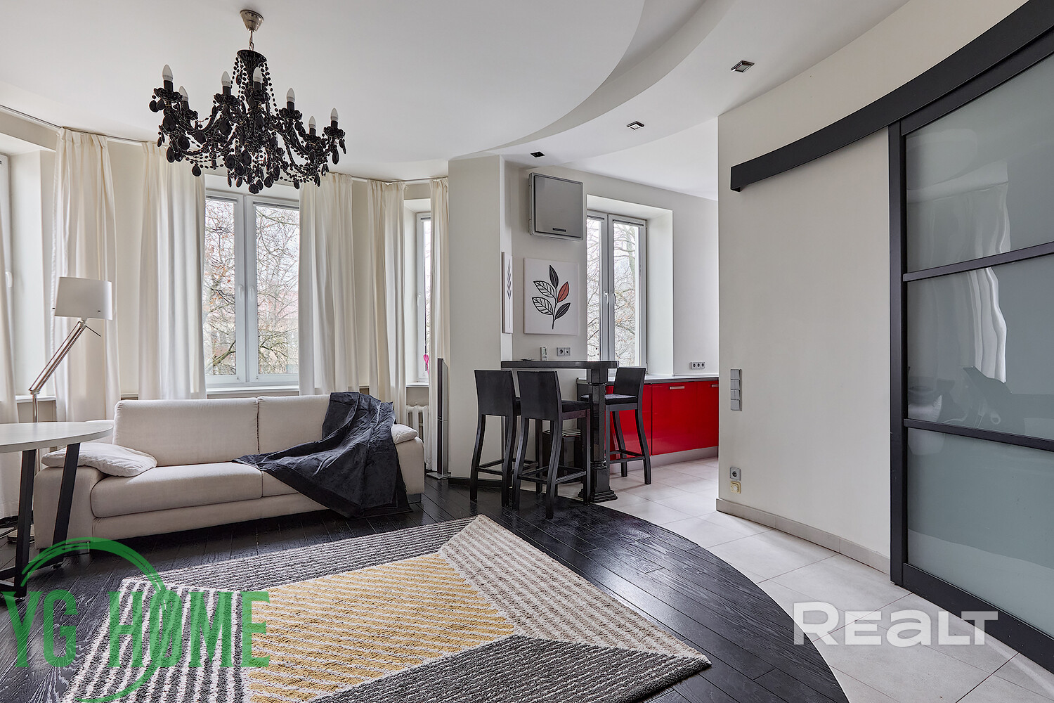 - В зоне кухни-гостиной установлен кондиционер LG.