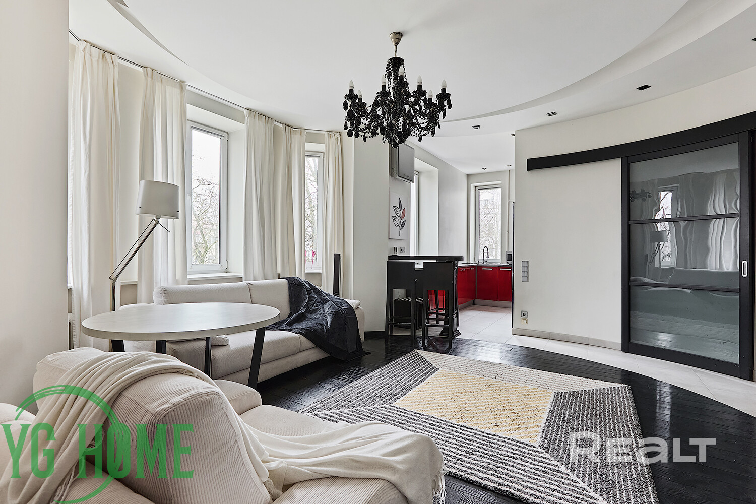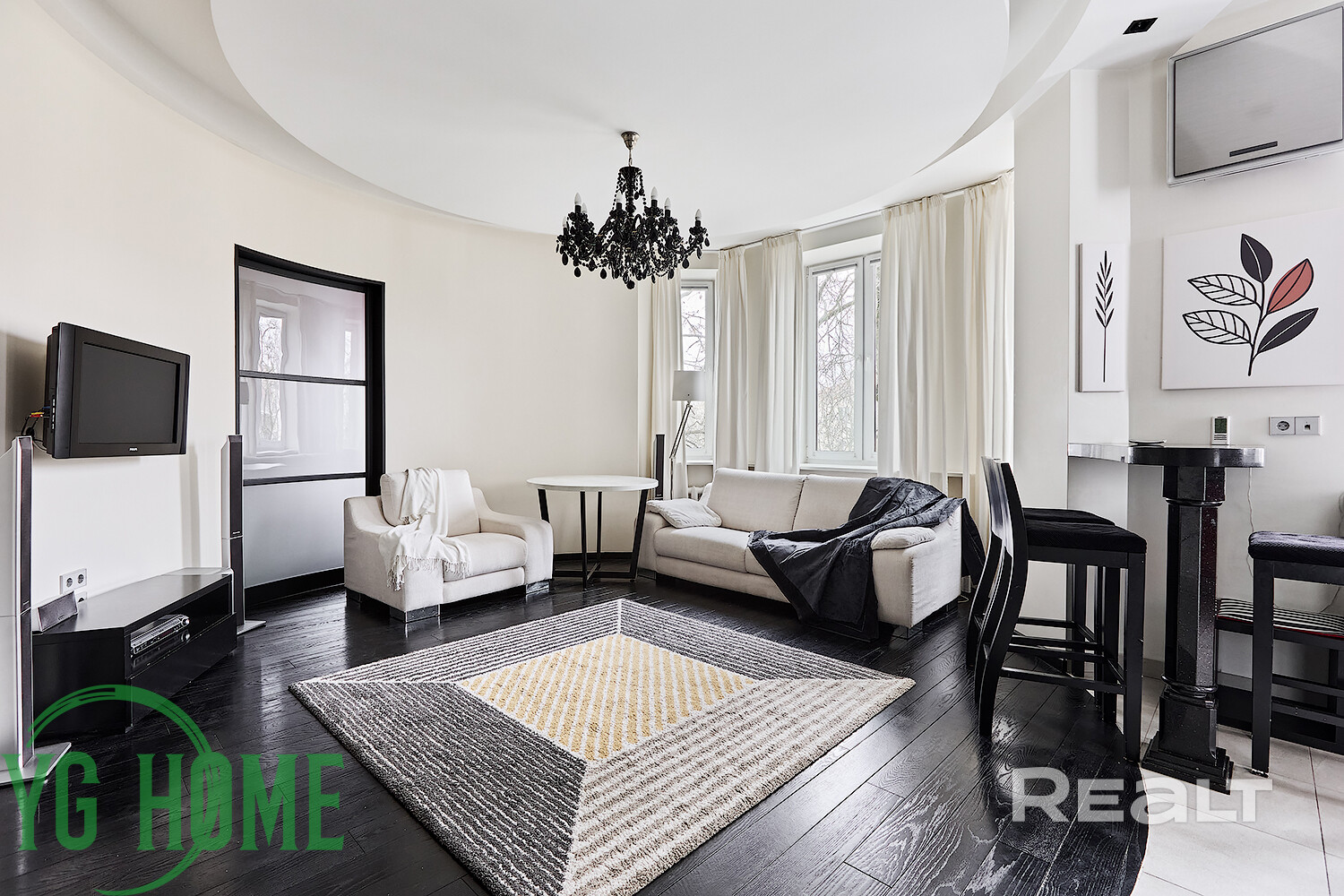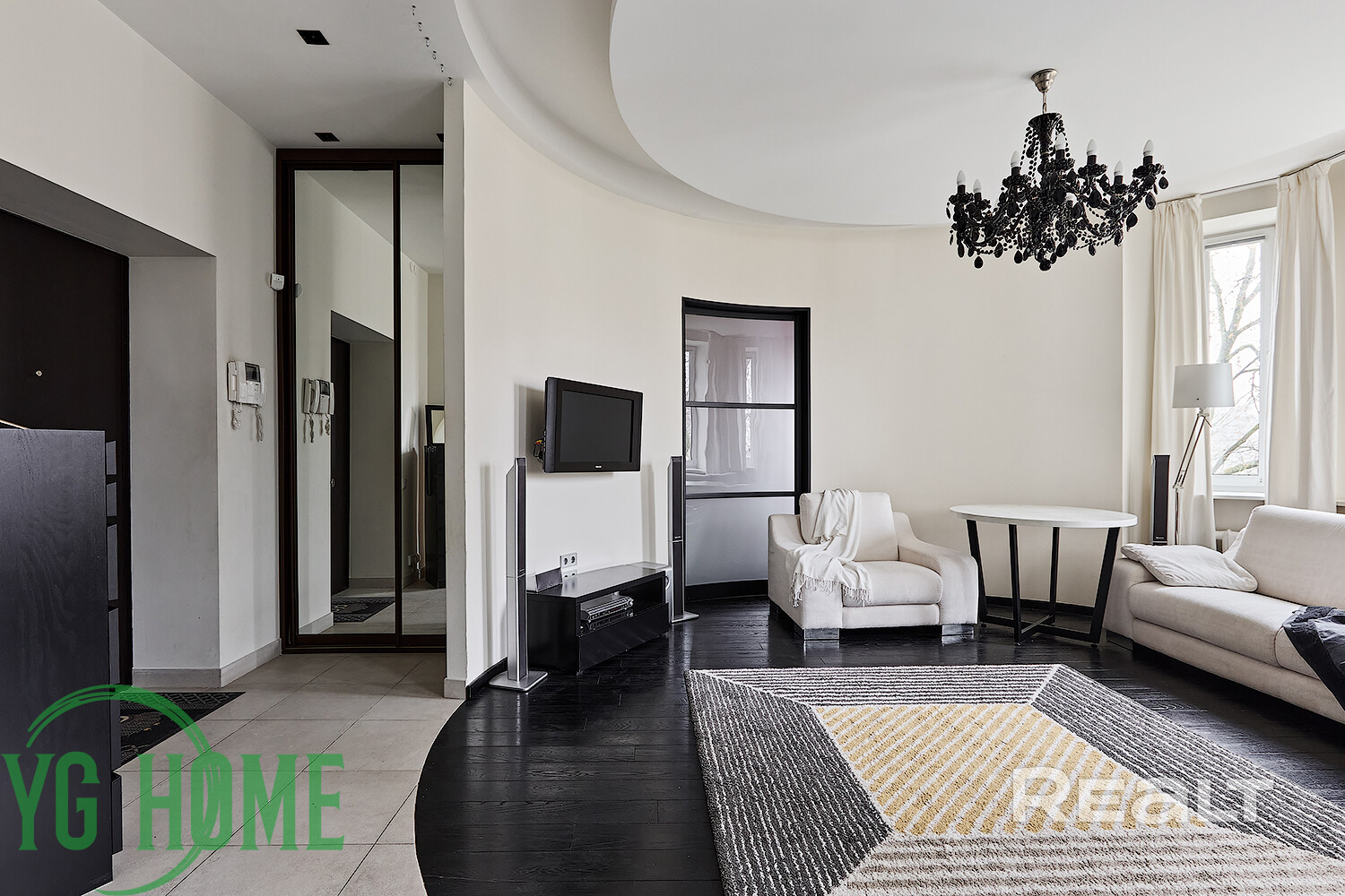 Полы – дубовая паркетная доска Coswick/плитка (в зоне кухни/санузла полы с системой электроподогрева).
