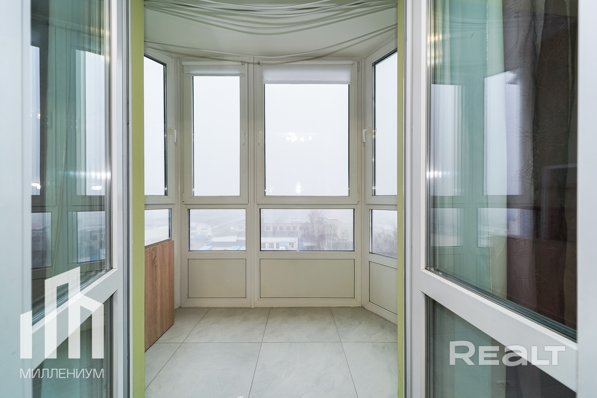 Отдельная комната, просторная кухня, место под гардероб, полноценная лоджия.