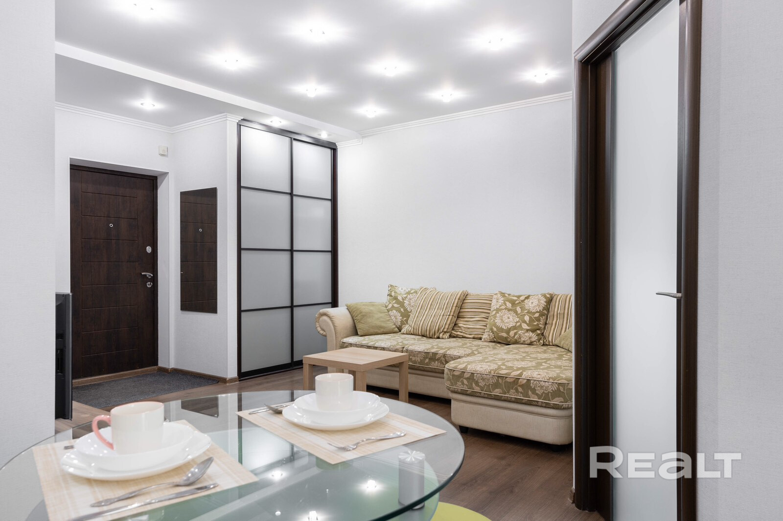 Теплая, светлая квартира с отдельной спальней и кухней-гостиной.