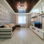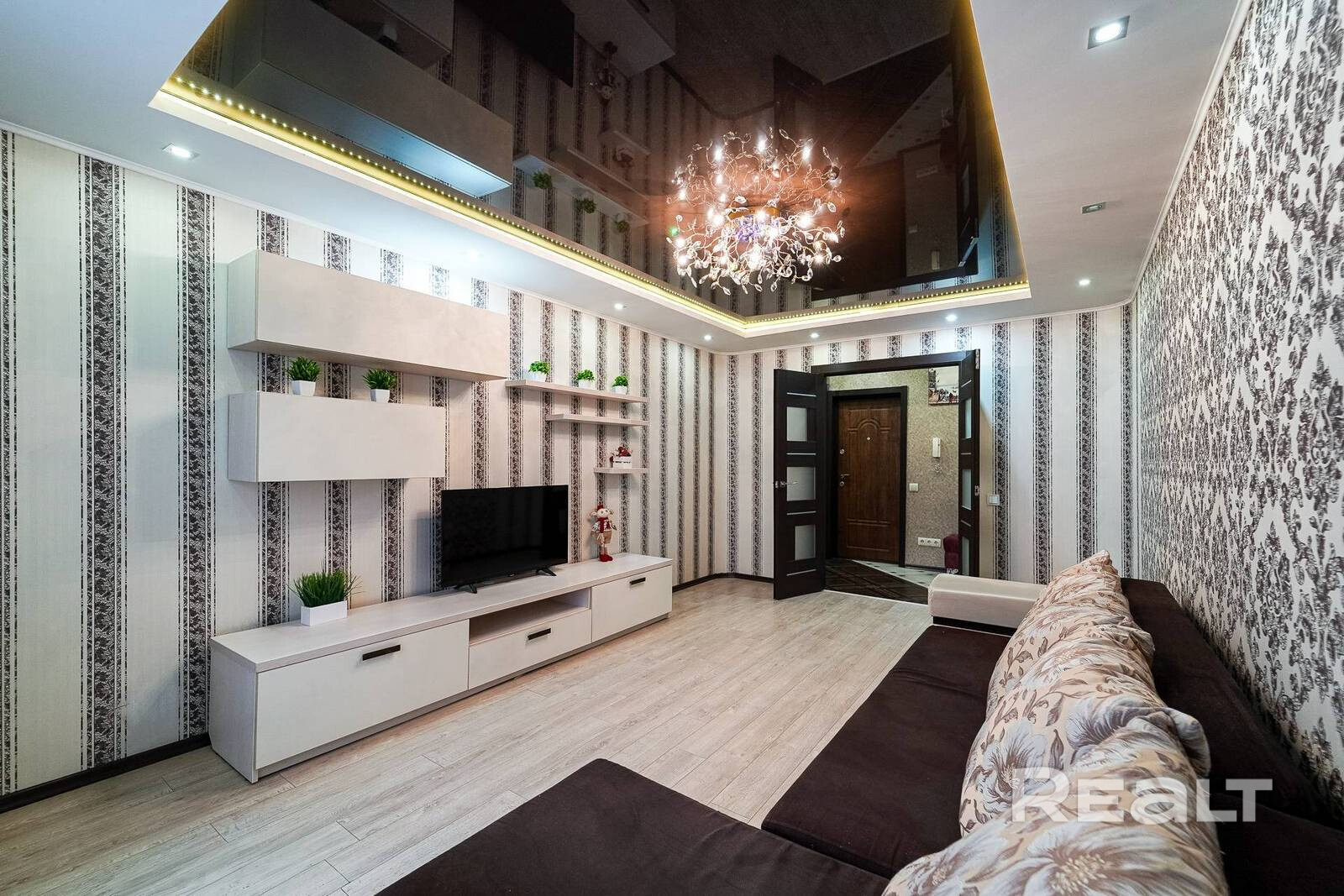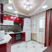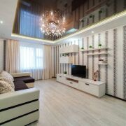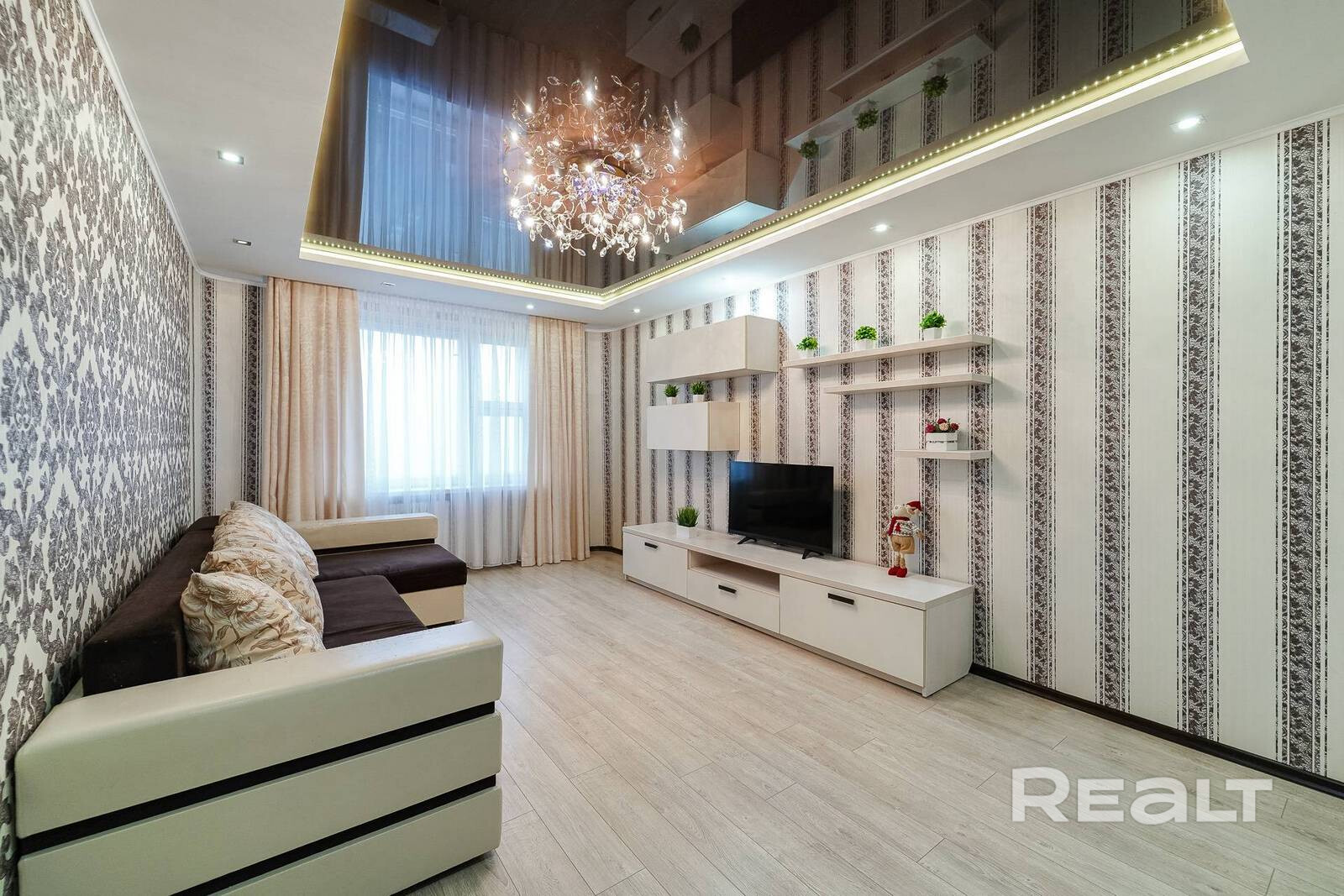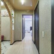 В квартире выполнен качественный ремонт: заменена электропроводка и сантехника. На полу — уложен ламинат, в санузлах, кухне и коридоре — плитка. Стены выровнены и оклеены обоями, смонтирован двухуровневый натяжной потолок. Лоджия застеклена и утеплена.