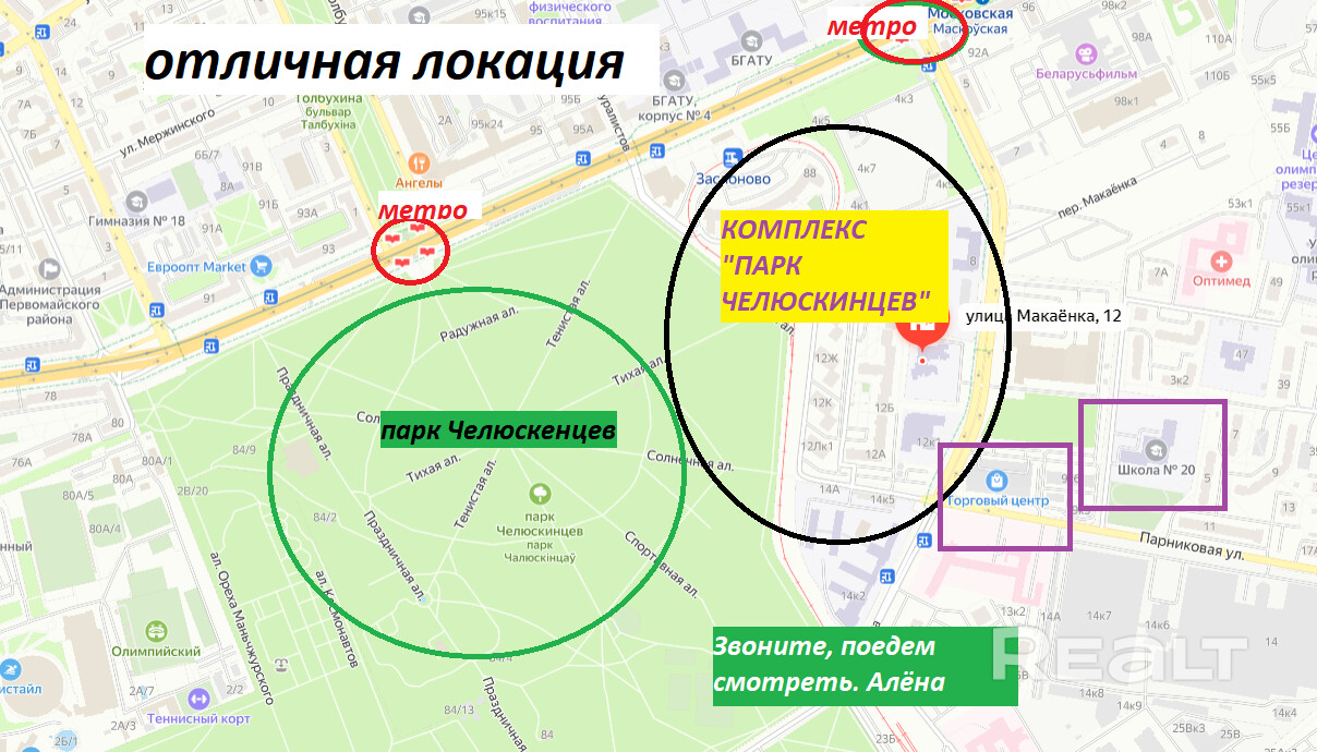 Преимущества: Парк культуры и отдыха имени Челюскинцев и Центральный ботанический сад. От метро 6 мин: «Московская» и «Парк Челюскинцев».