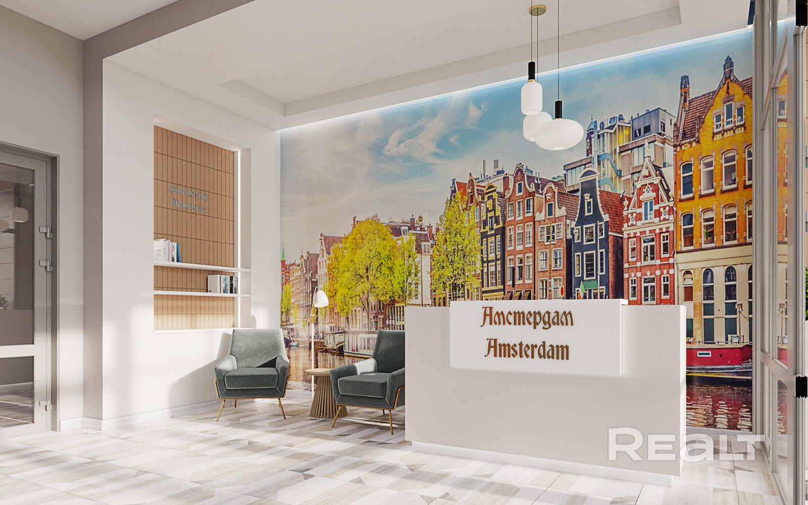 На первом этаже располагается лобби с уникальным дизайном и местом для консьержа.