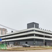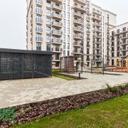 Закрытый двор, рядом паркинг и торговый центр, школа.