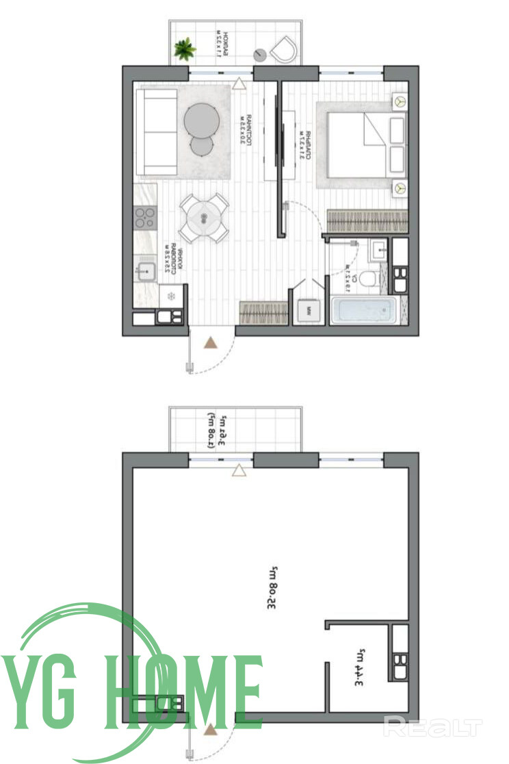 (жилая с кухонным оборудованием и спальня)