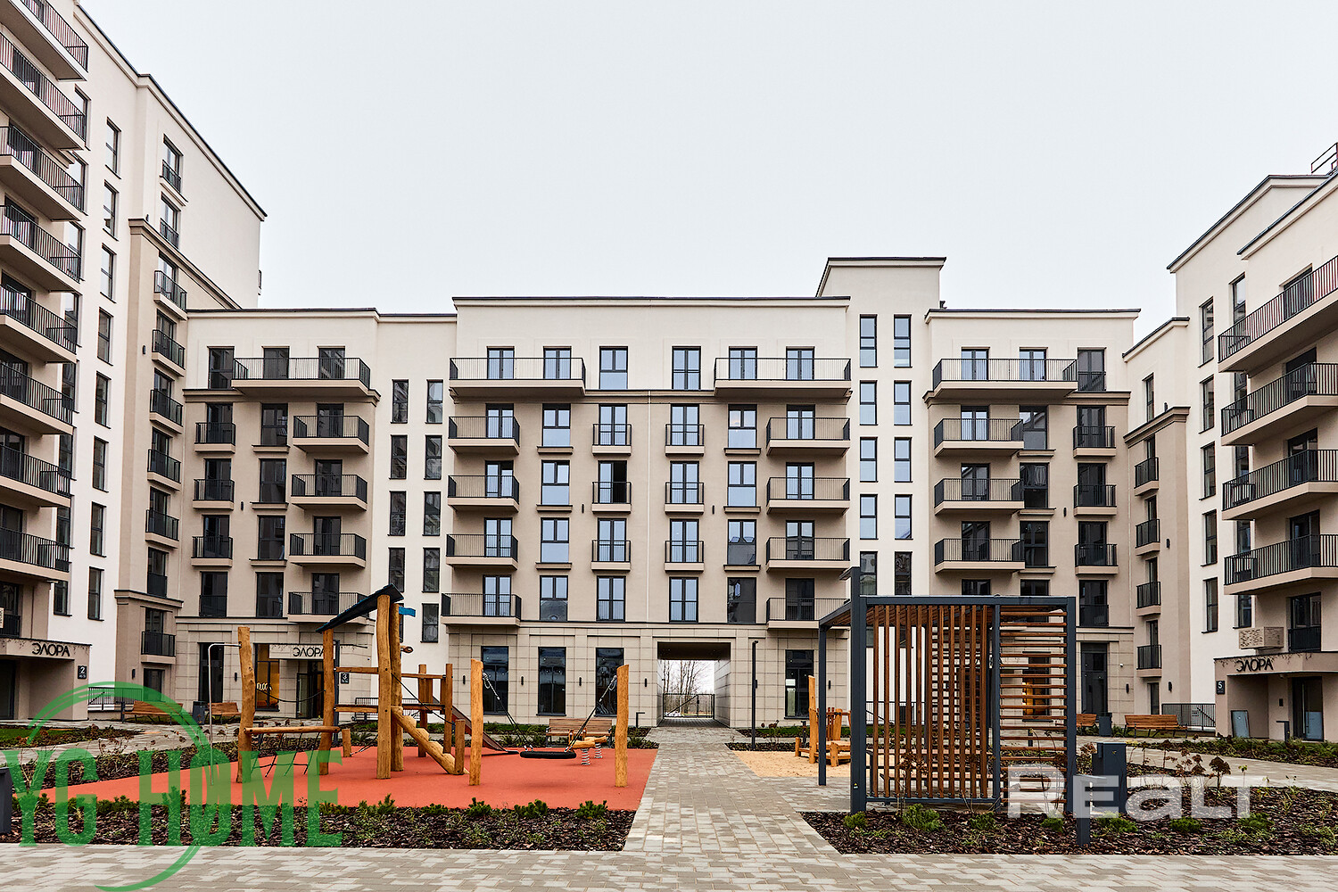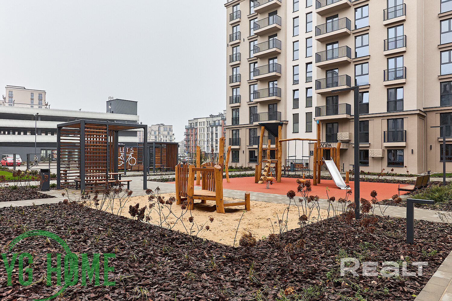 Закрытый двор, рядом паркинг  и торговый центр, школа.