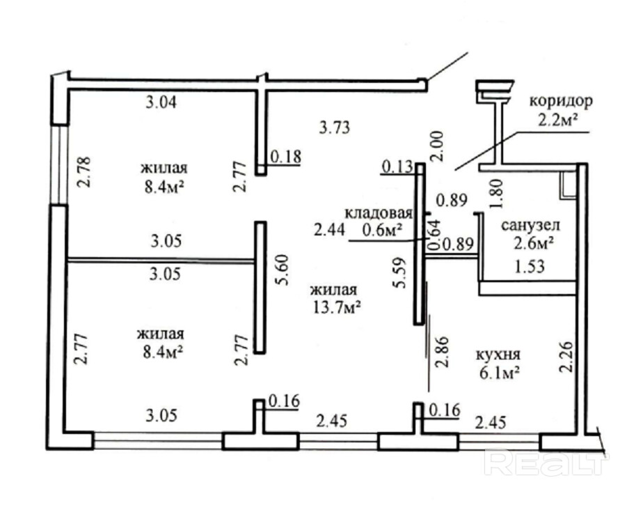 — Две изолированные комнаты + кухня, совмещённая с гостиной