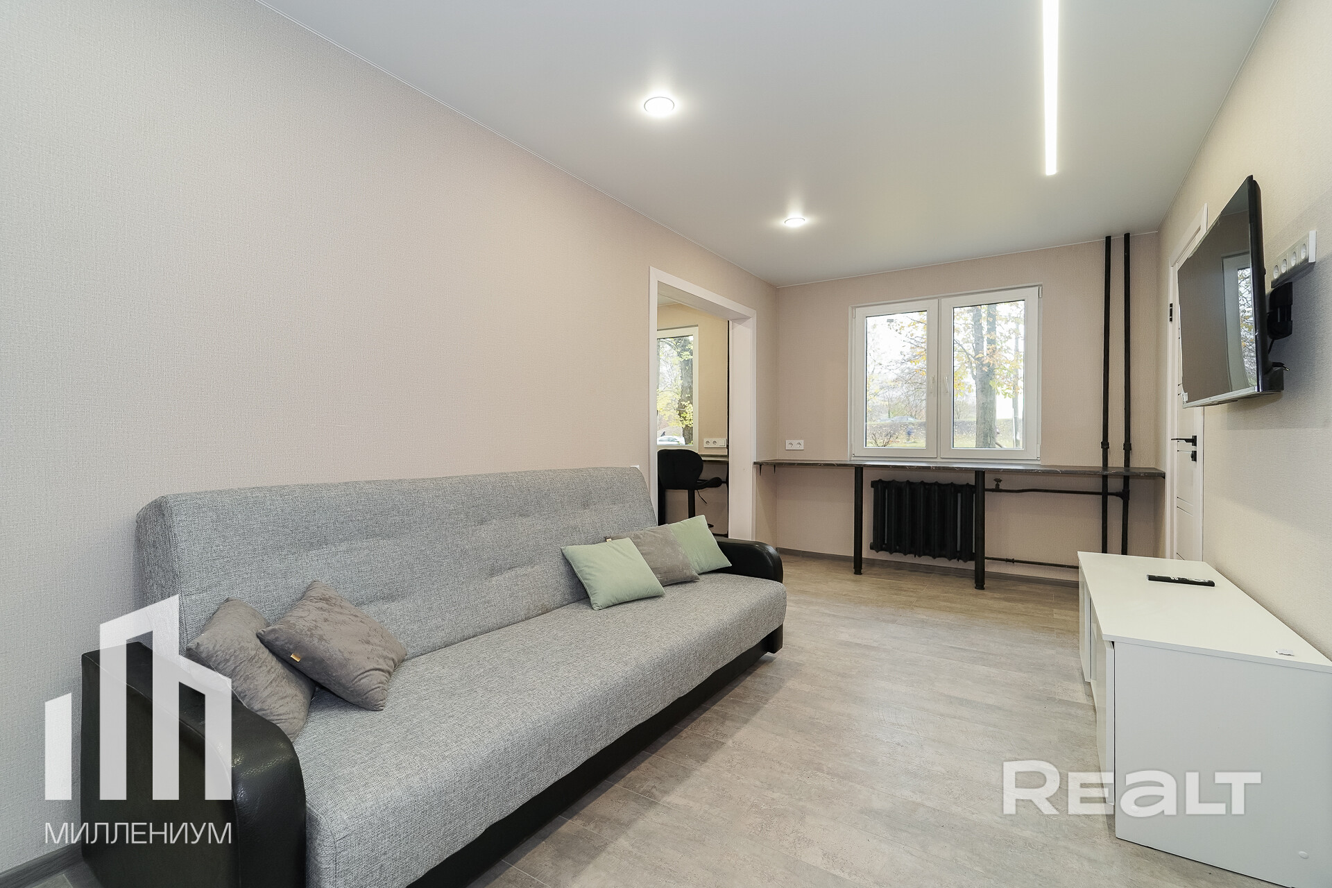 — Современный ремонт: ламинат, натяжные потолки, санузел совмещённый