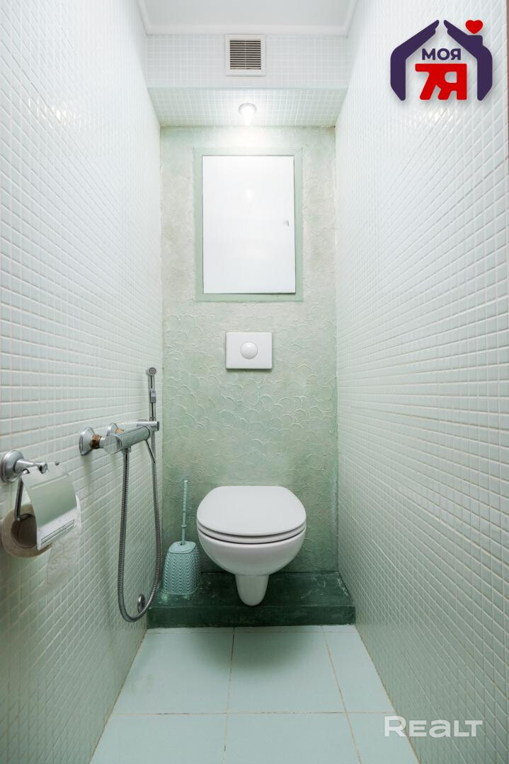 -Раздельный санузел - по-настоящему практично: утром каждый идёт по своему маршруту, без очередей и конфликтов. Он облицован плиткой, установлена качественная сантехника.