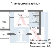Общая площадь квартиры - 48.7 кв.м