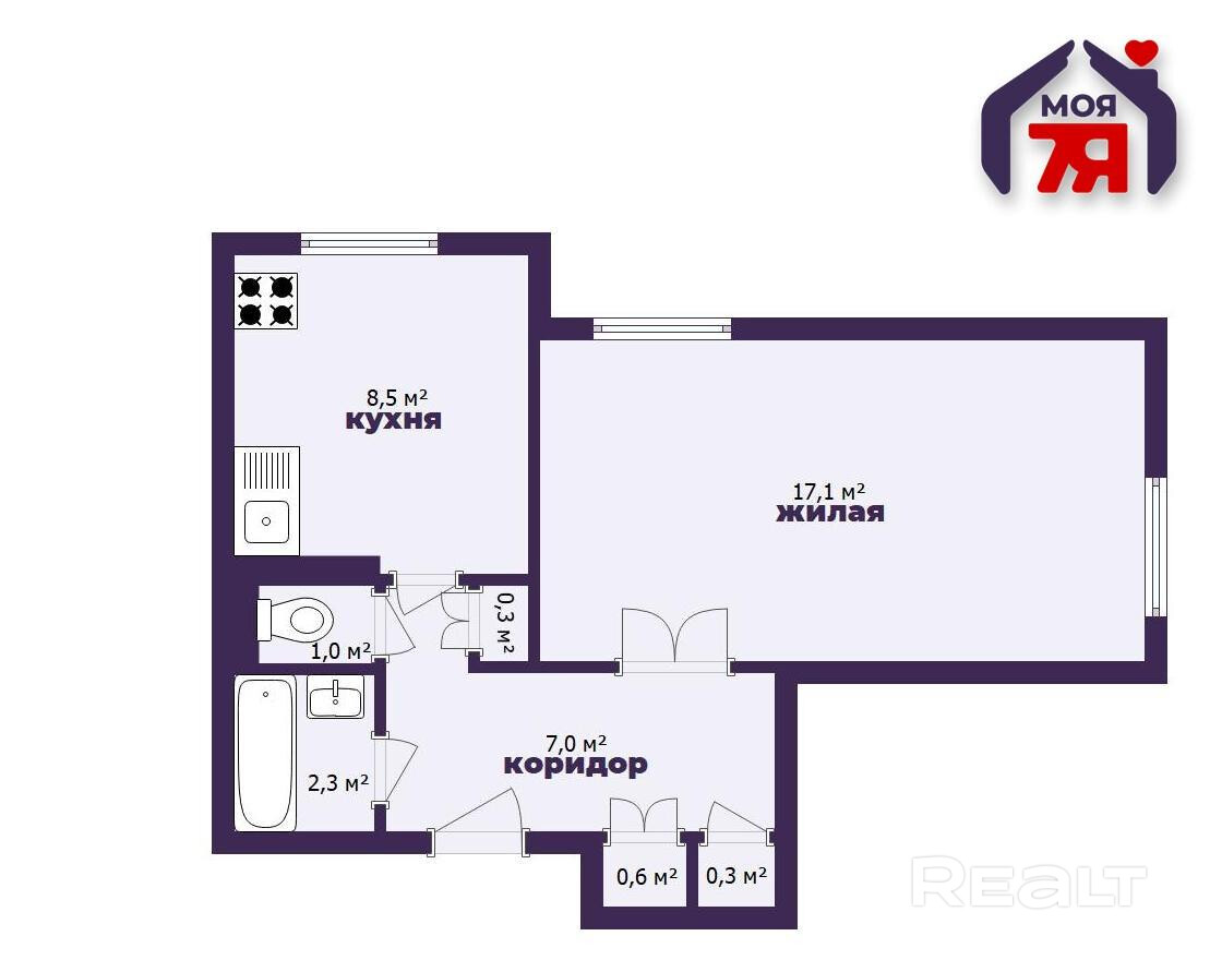 -Общая площадь - 37,1 кв.м., жилая - 17,1 кв.м., что делает пространство гармоничным и функциональным.
