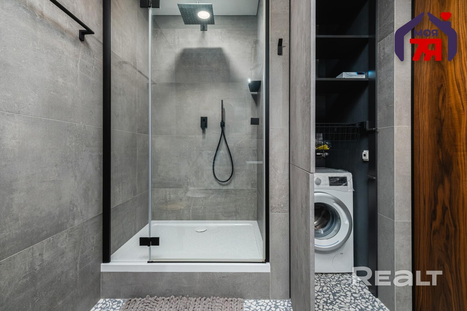 - Санузел оборудован дорогой европейской сантехникой. Установлен подвесной унитаз Villeroy & Boch с инсталляцией TECE (Германия), смесители и душевой комплект скрытого монтажа Tres (Испания), стильная душевая кабина Radaway Essenza New Black. Удобство и надежность обеспечивают розетки и выключатели Gira (Германия), а также дизайнерские радиаторы Terma Nemo с регуляторами Carlo Paletti.