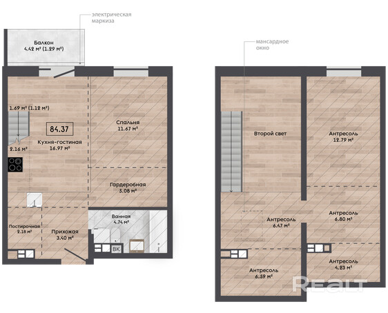 Мансарда словно спрятана под мягкой крышей дома — тихое убежище, наполненное светом и воздухом. Сквозь широкие слуховые окна внутрь льются солнечные лучи, отражаясь на деревянных балках и создавая тёплую игру теней. Пространство дышит лёгкостью: высокие потолки уходят вверх под углом, а натуральные материалы наполняют комнату уютом и спокойствием. Здесь время течёт медленнее — в мягком кресле у окна можно слушать дождь, смотреть на звёзды или просто наслаждаться тишиной. Мансарда — это место, где мысли становятся чище, воздух свежей, а каждый уголок будто создан для вдохновения и отдыха.