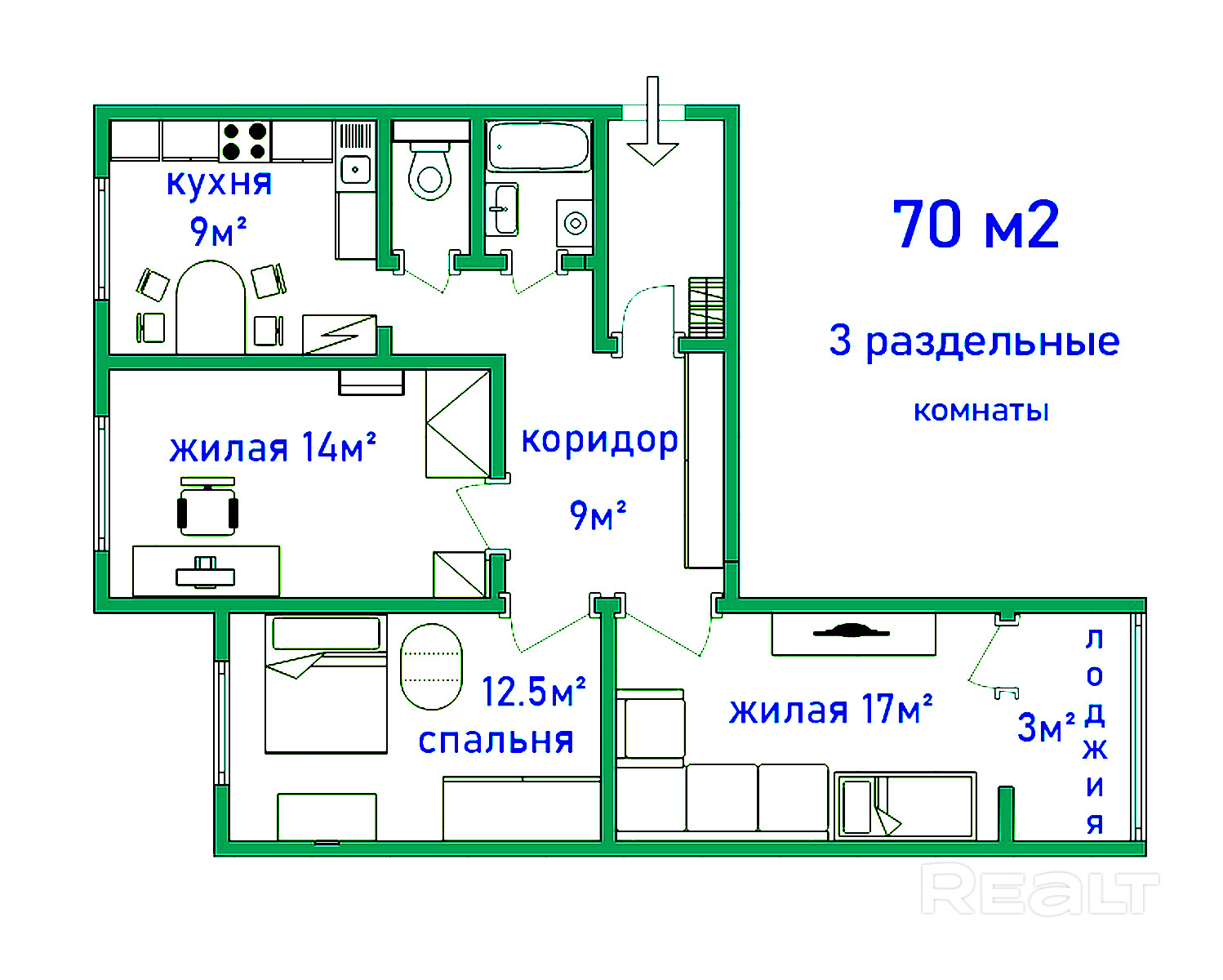 - Раздельных комнат