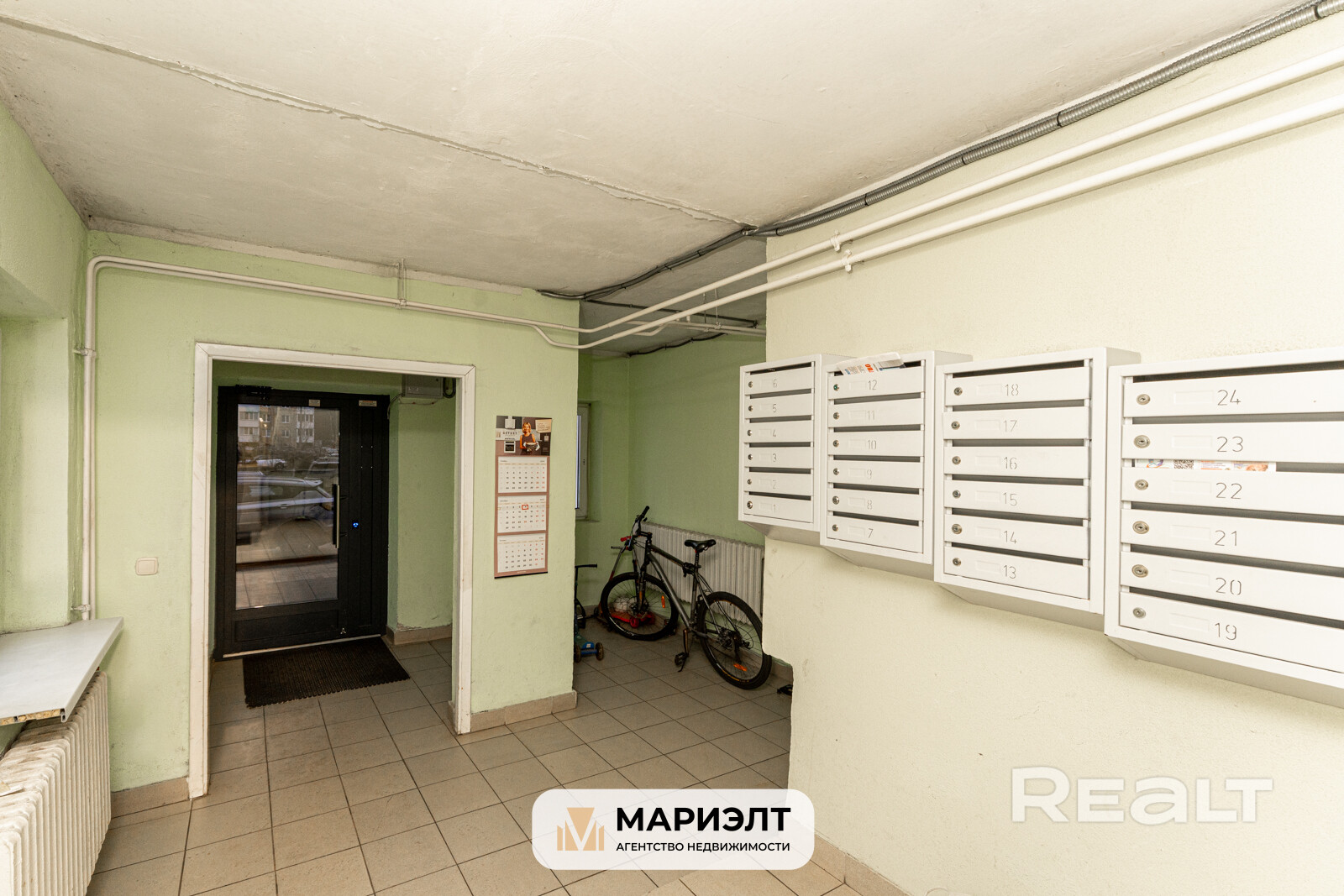 Просторный тамбур, в котором только две квартиры и оборудованное помещение для хранения велосипедов/колясок. Ухоженный подъезд. Живописные виды из окон.