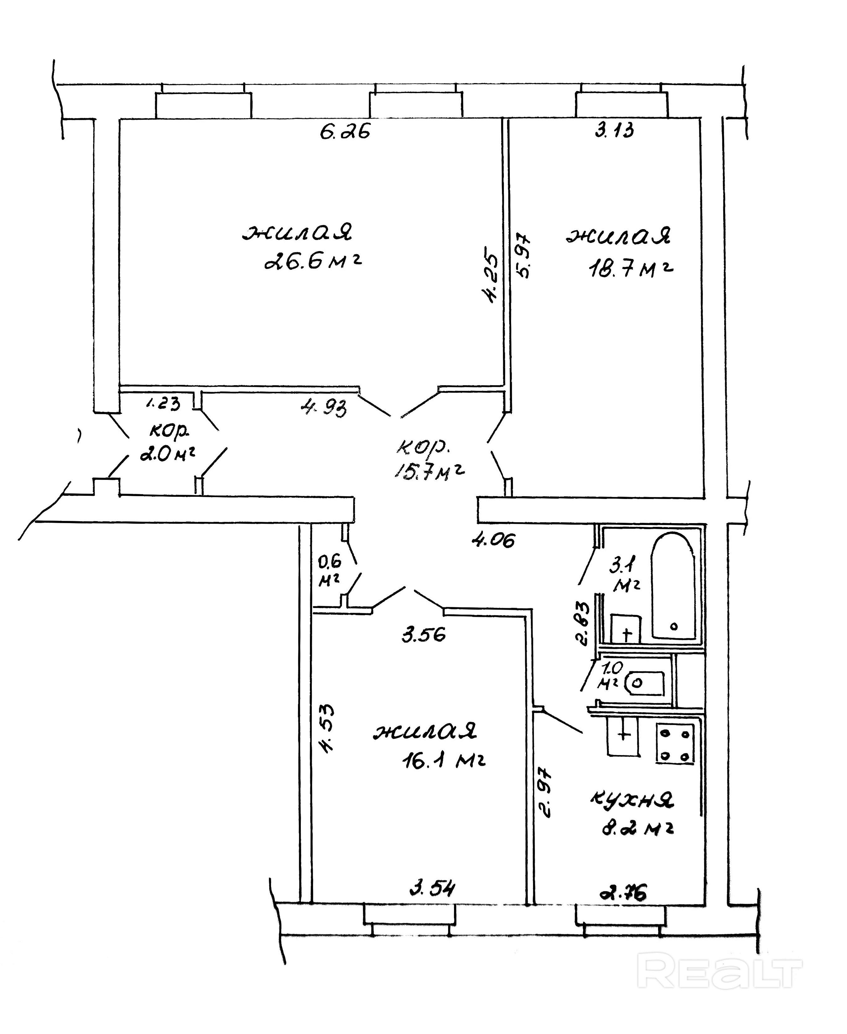 -большие площади комнат дают полную свободу для реализации современных дизайнерских решений под потребности нового владельца.