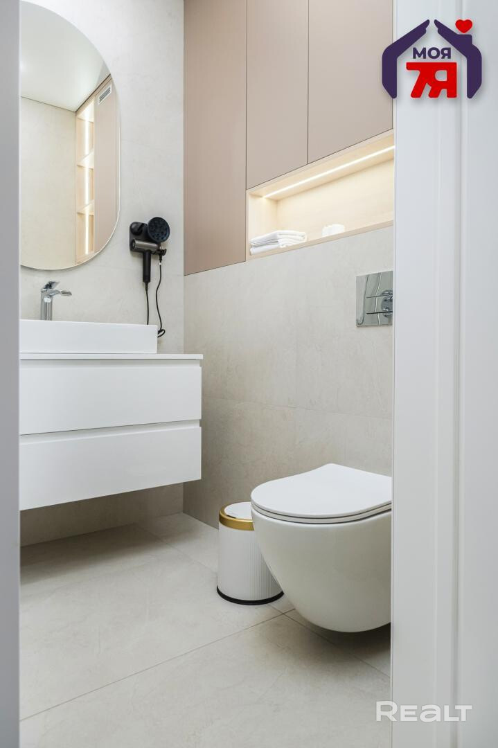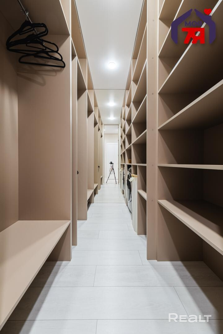 -Гардероб заслуживает отдельного внимания - просторный, продуманный до мелочей. Здесь не просто удобно хранить вещи: размещена стиральная машина, а место и разводка позволяют установить и сушильную. Рациональная организация пространства делает гардероб полноценной функциональной зоной, освобождая квартиру от лишней мебели.