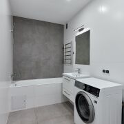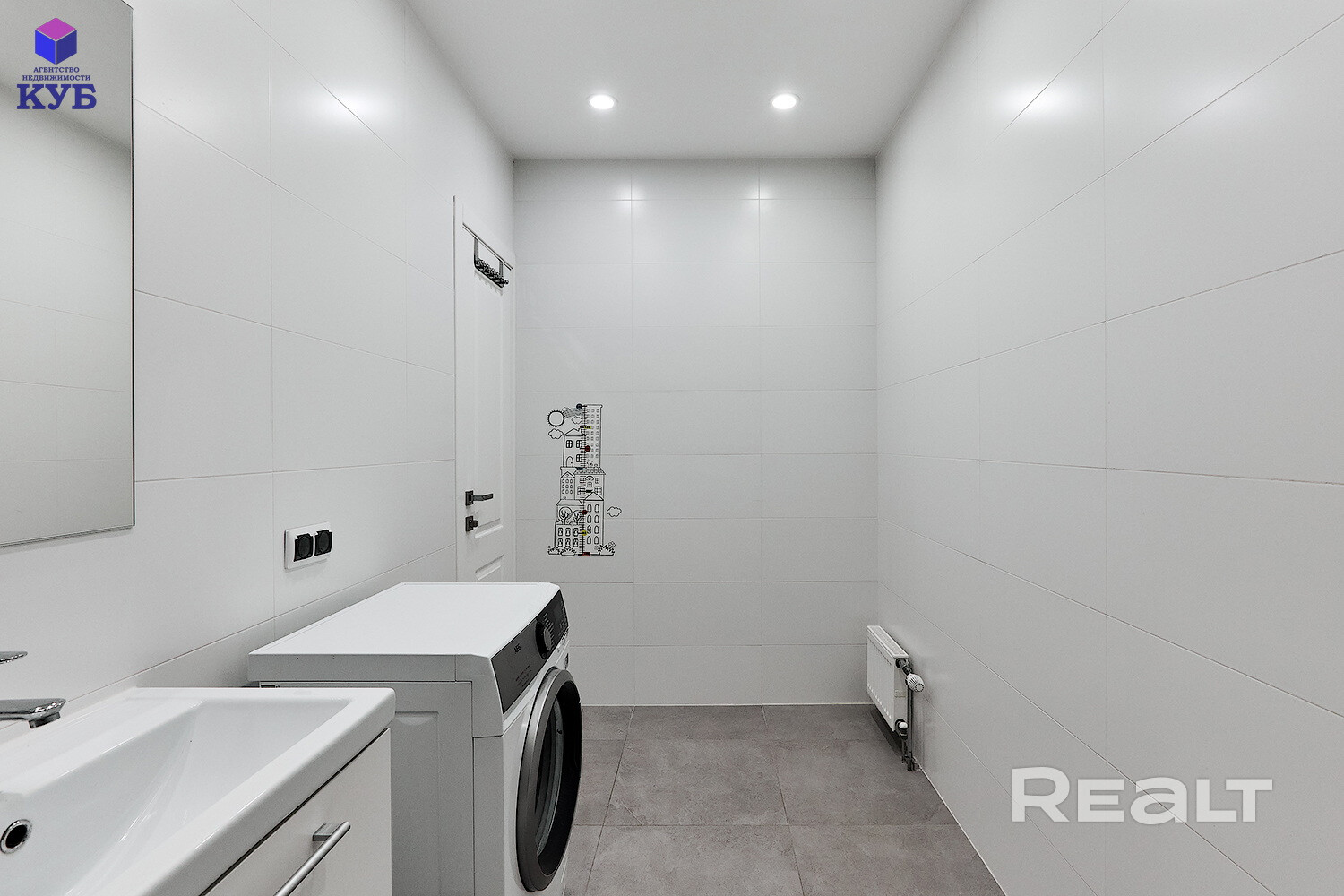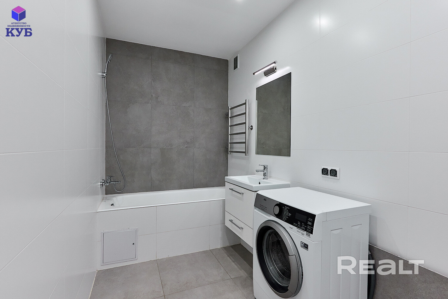 ✔ полностью оборудованный санузел с чугунной ванной «Roca» 170*70, умывальником, унитазом – вся сантехника исправно функционирует, испанская керамогранитная плитка, стиральная машина «AEG»