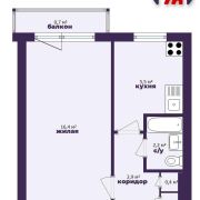 - Общая площадь 27,7 кв.м с жилой зоной 16,4 кв.м и кухней 5,5 кв.м.