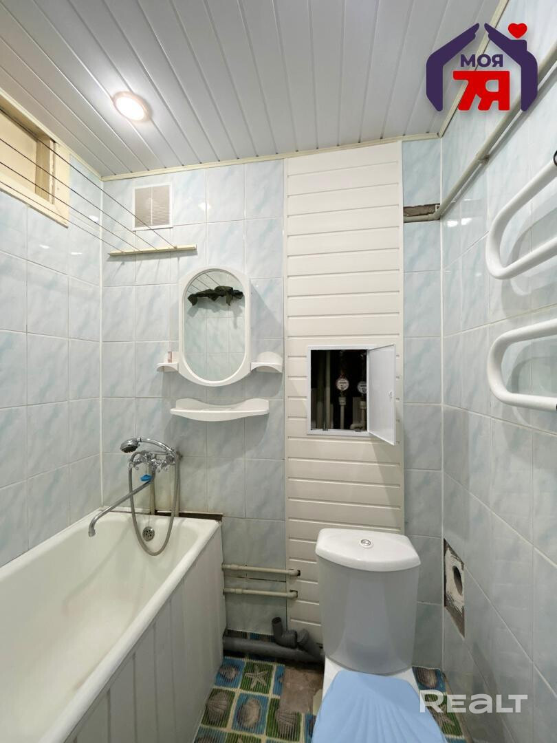 - Совмещённый санузел с частично заменёнными трубами из полипропилена снижает необходимость дополнительных работ и упрощает дальнейшие обновления инженерных коммуникаций.