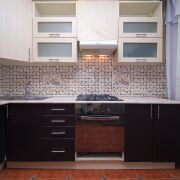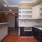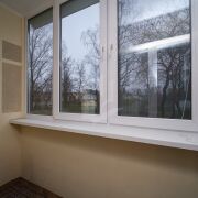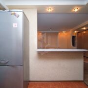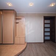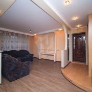 - Качественный ремонт включает замену всей проводки, сантехники и трубопроводов, полы покрыты ламинатом и плиткой, окна и балкон остеклены современными рамами ПВХ, потолок — гипсокартон, выполнены два уровня с подсветкой.