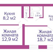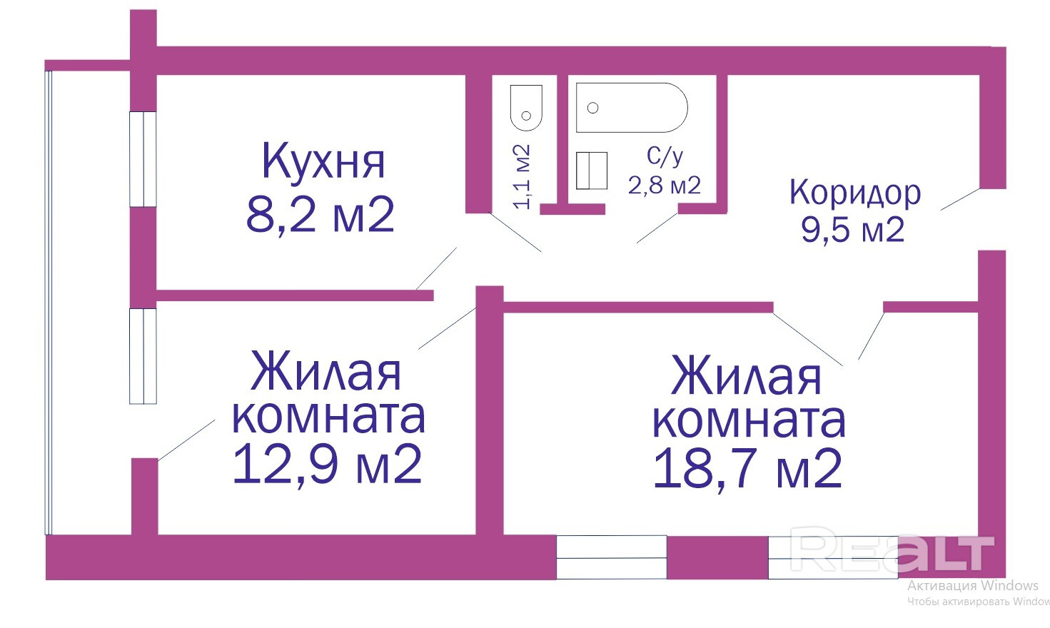 Общая площадь: по СНБ 59 м2 /56 м2, жилая 31.4 м2, кухня 8.2 м2.