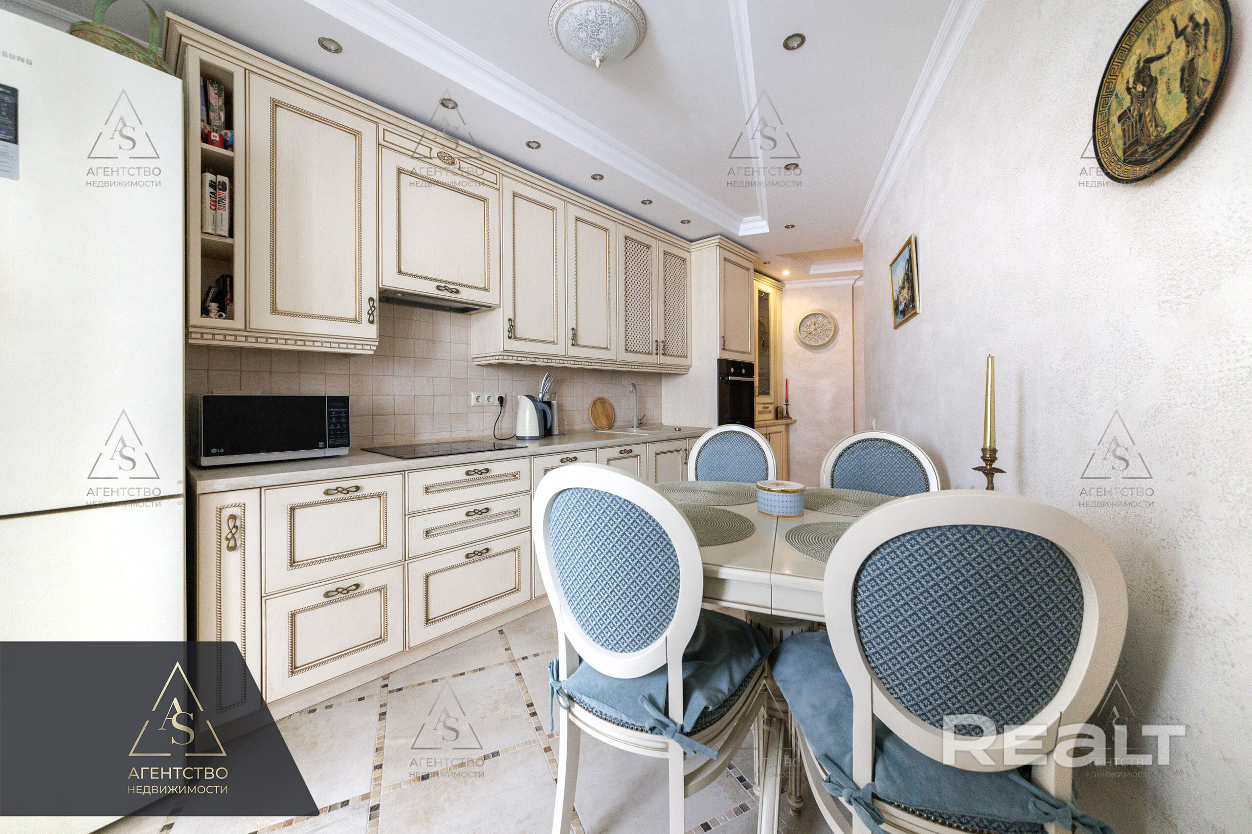 Квартира мечты в классическом стиле Элегантная квартира в центре Минска площадью 83,4 кв. м на ул. Могилевской — идеальное сочетание уюта и стиля. Качественный ремонт, светлые тона, натуральный паркет, деревянная мебель на заказ и современная техника. Развитая инфраструктура, удобное расположение. Квартира полностью готова к заселению.